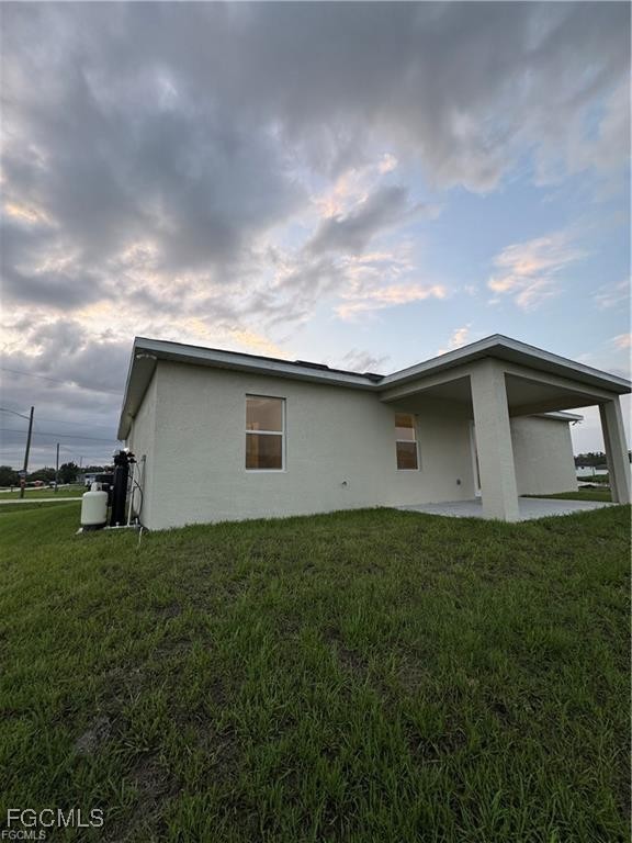 Spectacular brand new house! 1 story, single family home located in a great community in Lehigh Acres. Florida. Open concept floor plan with vaulted ceilings and spacious living room. 4 bedroom's 2 bathrooms and 2 car garage with a bay for an additional 4 cars. Bedrooms have large walk-in closets and primary bathroom has his and hers sinks and tiled shower. Granite counters in bathrooms and kitchen center island, soft close cabinets, and stainless steel energy efficient appliance package. Approximately 1,500 sq. ft. under air, over 2100 sq. ft. total. Covered terrace, great backyard.