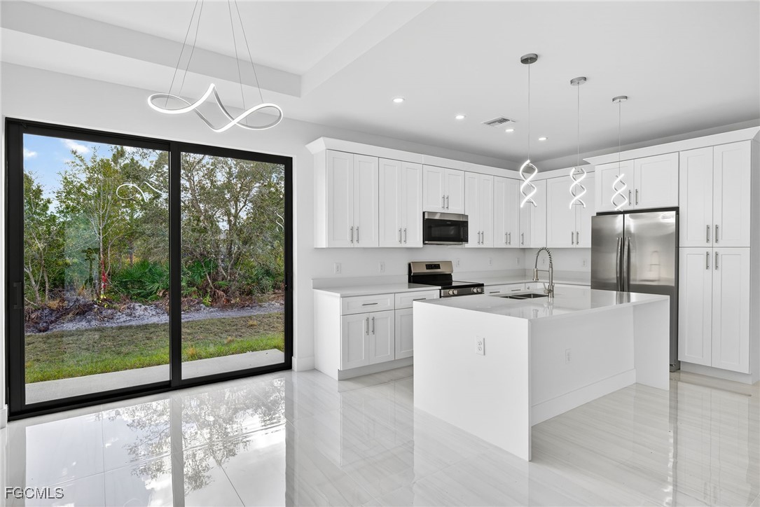 New Construction 3/2 Spacious Home READY to MOVE IN. IMPACT WINDOWS. OPEN CONCEPT kitchen with wood cabinets and QUARTZ countertops. STAINLESS STEEL kitchen appliances included typically Frigidaire brand. This home has an open floor plan, PORCELAIN TILES floors throughout the entire home and much more. Schedule your showing today and come see this beautiful home! Very easy to show.