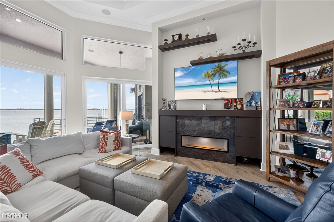 Beyond the private, guarded gates of Catalpa Cove, an intimate enclave of distinguished residences rests quietly along the shimmering expanse of the Caloosahatchee River. And at the tip of this exclusive waterfront cluster, where the views open wide and the water becomes the horizon, sits a home that feels like the destination. From the moment you go inside, the river makes its presence known in a sweeping, unobstructed panorama framed by soaring ceilings, walls of glass, and luminous natural light that dances across refined finishes and beautiful appointments. The home is equally elegant and effortless, designed for elevated daily living and unforgettable entertaining. At the heart of the residence, a chef’s kitchen with an expansive breakfast bar anchors the open-concept design, flowing seamlessly into the family room where dramatic ceiling heights and a sleek linear fireplace create a modern backdrop, all wrapped in breathtaking water views. Whether hosting an intimate sunset dinner or a lively gathering with friends, every moment here feels framed, like art. The primary suite is its private retreat, complete with a tranquil sitting area tucked beside a bay window overlooking the pool, dock and river beyond. The en-suite bath delivers a spa experience, calm, indulgent and beautifully finished. Upstairs, the lifestyle continues. A reimagined and expanded bonus room offers the ideal space for kids, guests, or movie nights. And the separate guest house with a full bath adds a rare layer of flexibility, ideal as a private suite, executive office or effortlessly transformed into an elite riverfront gym. Outside, the home becomes pure Florida luxury. Spend sun-soaked afternoons beside the saltwater infinity-edge pool, unwind under the stars by the fire pit and let the river breeze set the pace of your day. With a newly upgraded dock and 16,000-pound lift, the Gulf and barrier islands are not just nearby, they’re part of your lifestyle. And behind the beauty is uncompromising peace of mind, built high and strong, featuring a newly raised and reinforced seawall, Kevlar storm screens throughout, generator and propane tank, and a new roof (2022) with no water intrusion in any storm, according to the owner. This is not simply a home. It’s a waterfront statement. A private escape. A riverfront dream realized.