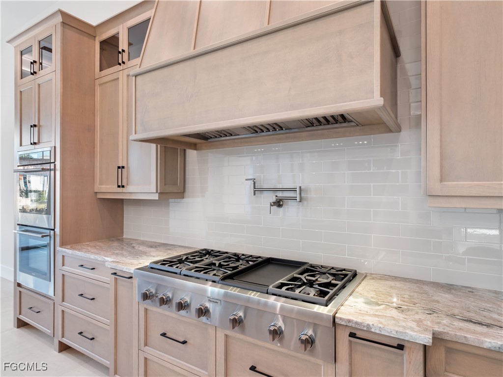 Brand-new construction positioned on deep-water frontage with direct, quick access to the river, this waterfront residence offers a rare opportunity for buyers seeking modern construction paired with true big-boat capability. Located at a quiet cul-de-sac and overlooking the intersection of two canals, the setting provides both privacy and wide, open water views, ideal for serious boaters. Built to the latest building codes, the home features impact-rated doors and windows, a whole-house generator, and a composite dock designed for durability and low maintenance. The thoughtful construction and attention to detail deliver peace of mind alongside elevated coastal design. The interior offers three bedrooms plus a den, three and a half bathrooms, high ceilings, and refined finishes throughout. A spacious three-car garage provides ample storage, while expansive living areas are anchored by a fireplace that adds warmth and architectural interest. Designed for seamless indoor-outdoor living, the exterior spaces are equally impressive. The rear patio features a second fireplace, a fully equipped outdoor kitchen with built-in grill, and a resort-style pool enhanced by custom water features and gas fire bowls that create a striking visual and ambiance day or night. Extensive landscape and architectural lighting further elevate the outdoor experience and highlight the home’s meticulous design. The kitchen is outfitted with premium Thermador appliances, a walk-in pantry, wine cooler, and carefully selected finishes that complement the home’s clean, modern aesthetic. Combining new construction, exceptional boating access, and thoughtfully designed outdoor living, this waterfront home stands apart as a turnkey opportunity for those seeking luxury, location, and lifestyle.