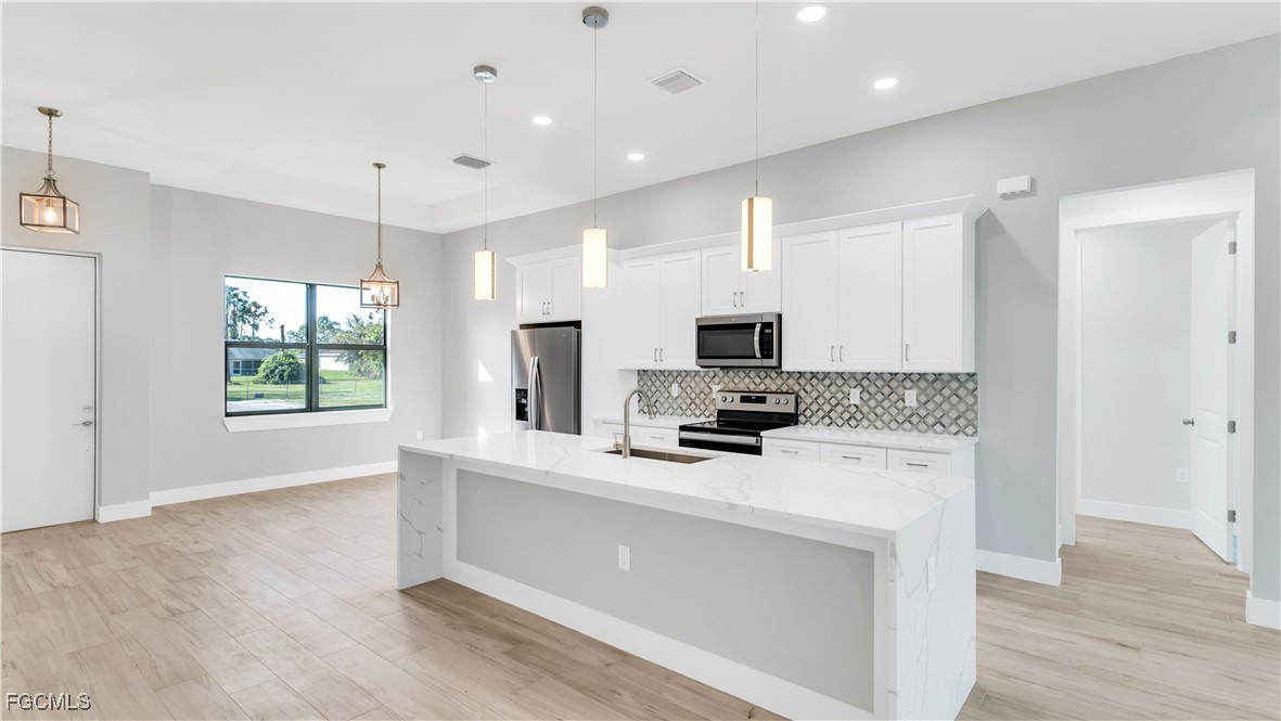 Situated on a .23-acre lot with landscaped views, this concrete block home also offers a 2-car garage, paved driveway, and automatic irrigation. Located in West Lehigh Acres with NO HOA restrictions or fees, NO Flood Zone, and convenient access to major roadways, shopping, and dining. A well-maintained, move-in-ready property offering modern construction and quality finishes throughout. This home is virtually staged please schedule a private showing so you can envision how you would apply your favorite design.
