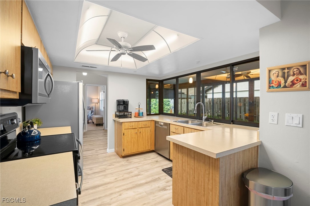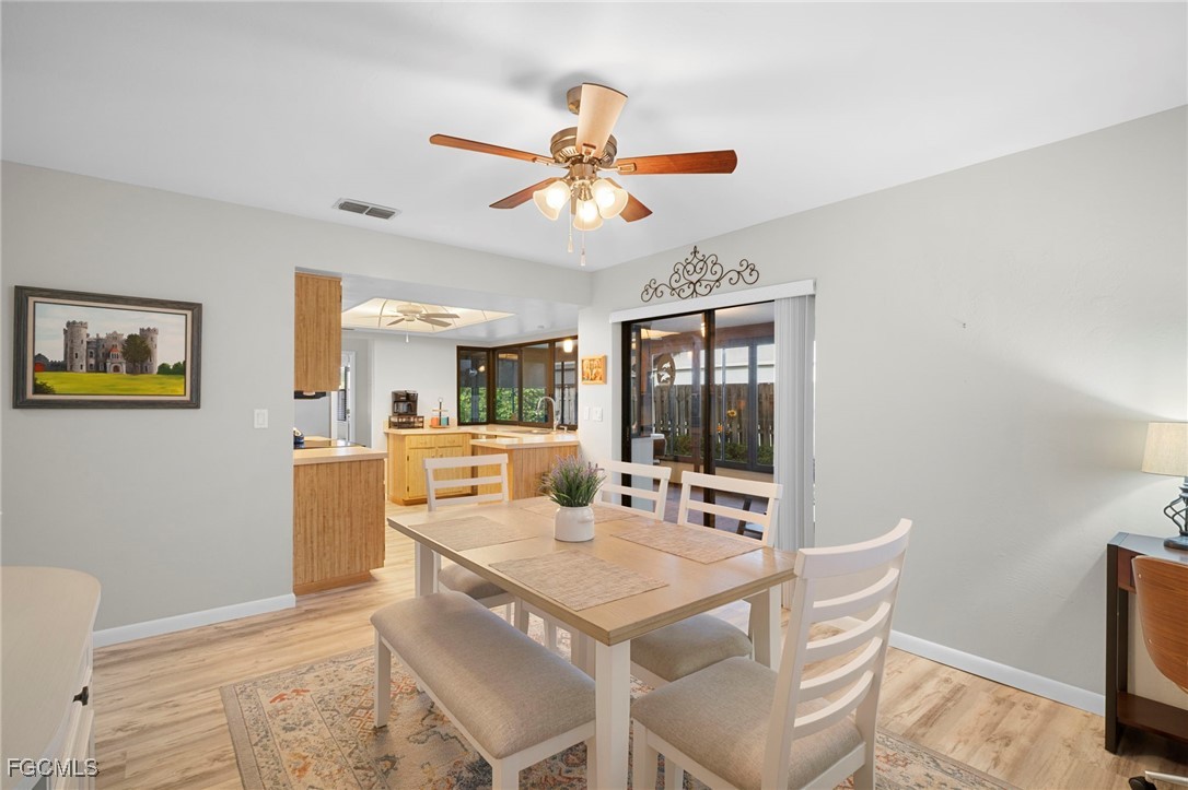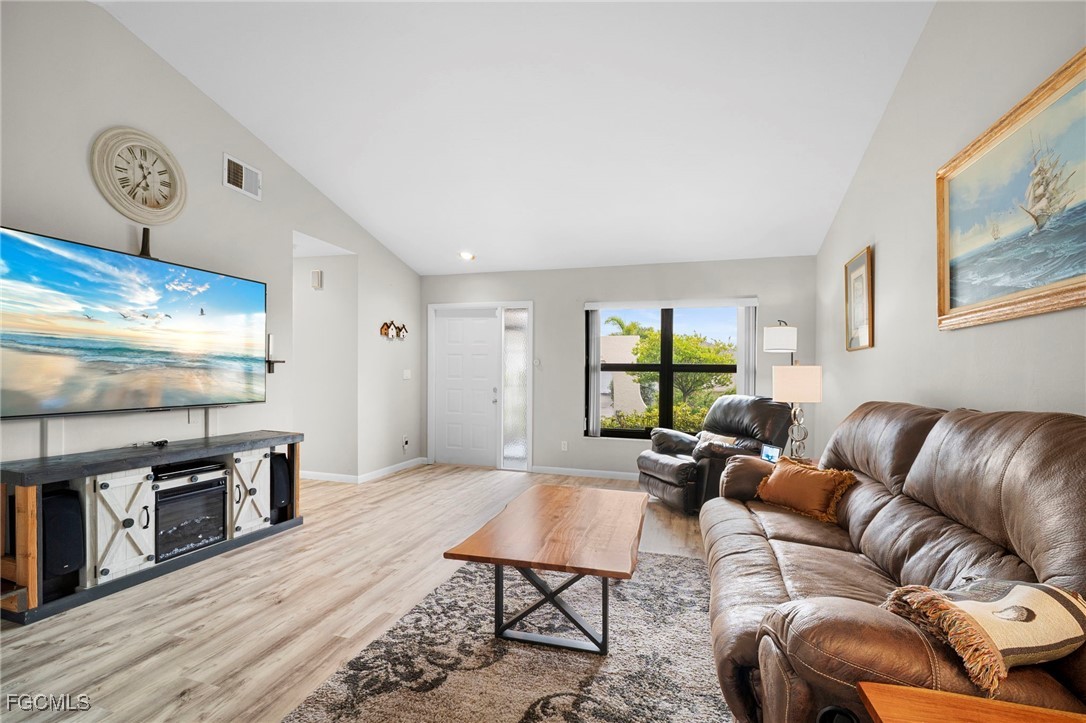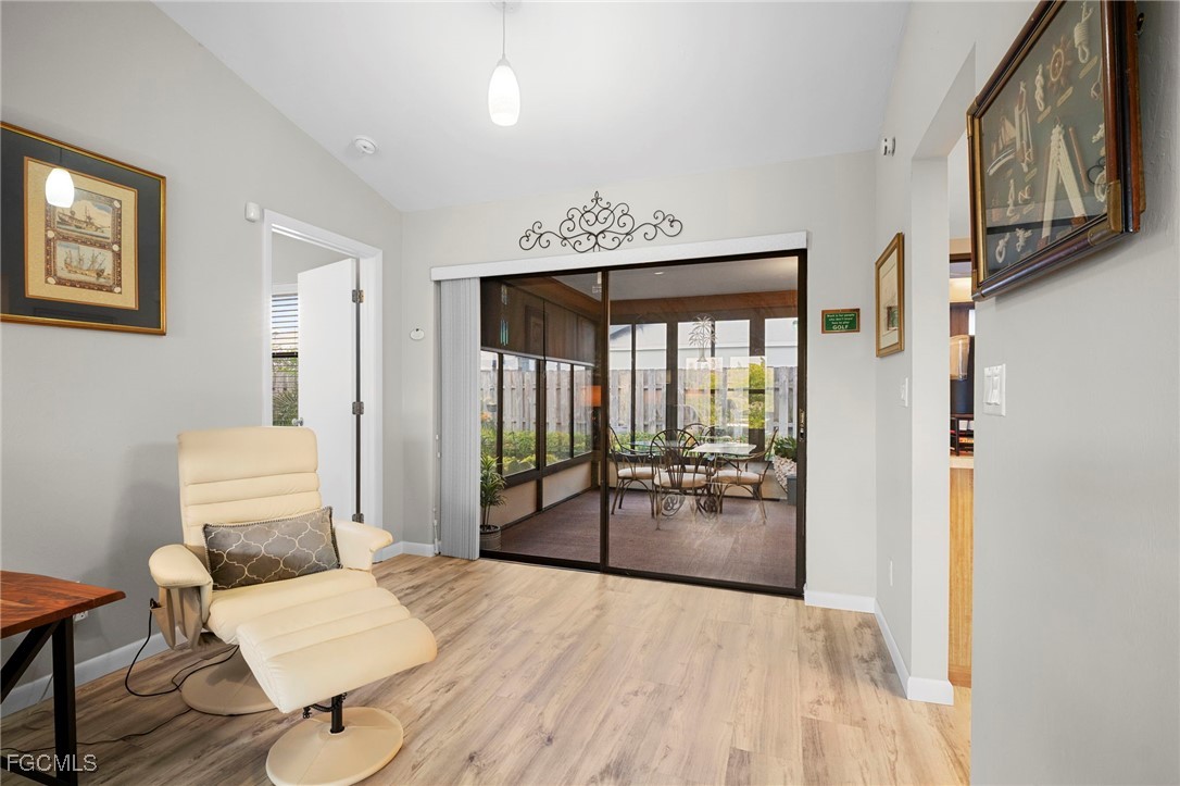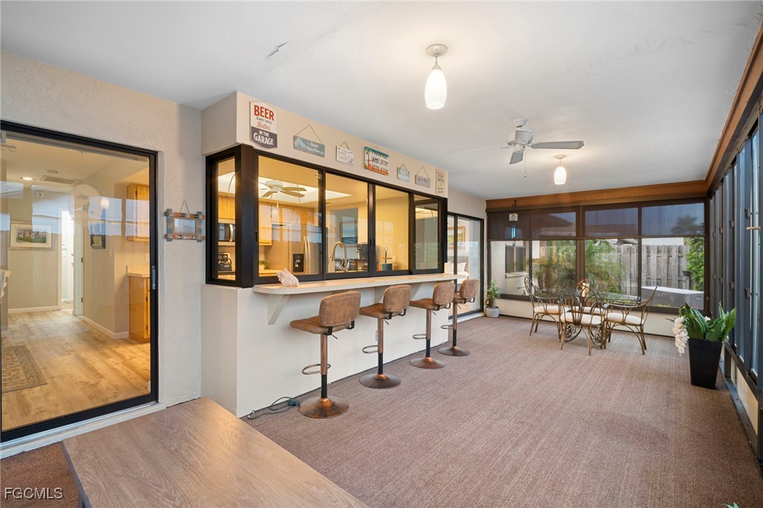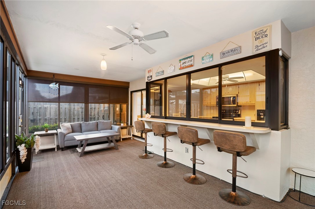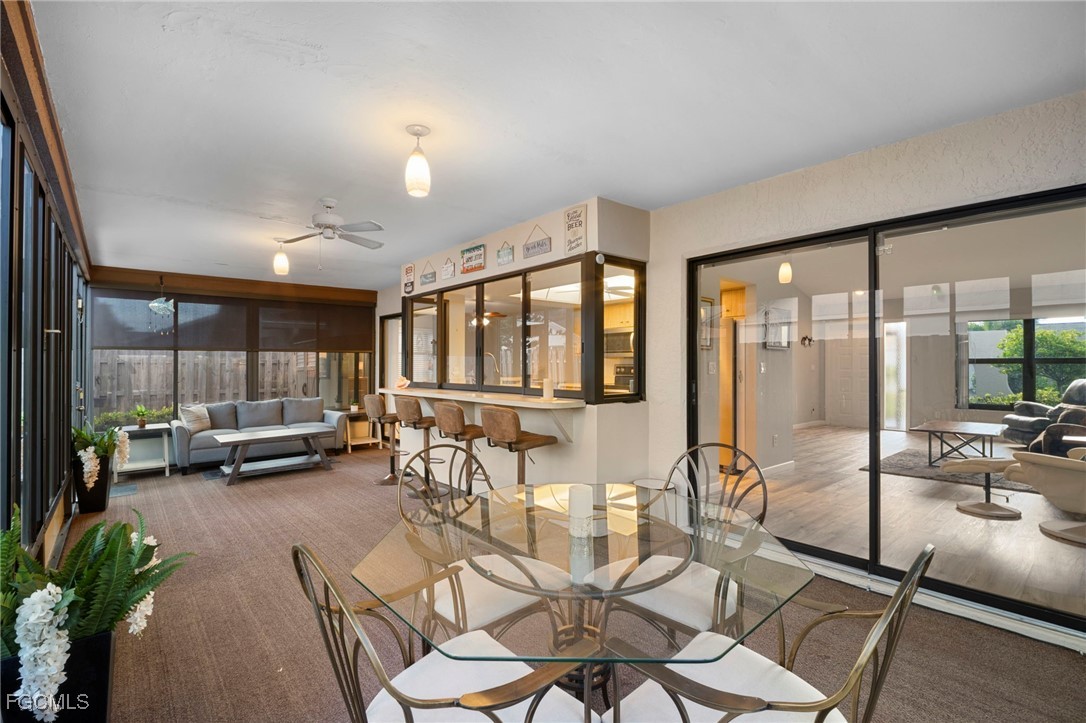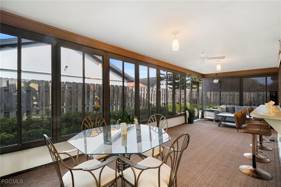 NEW ROOF 2023. The Split-bedroom floorplan is ideal for entertaining or just family living with extended living room and a separate dining room. The large, centralized kitchen has generous counters and cupboards with large sliding pass-thru windows to the lanai/FL room. Luxury vinyl flooring flows throughout the living areas and bedrooms. No Carpet here. Spend your days, evenings or nights entertaining or relaxing in the expansive, Glassed in lanai/FL room. Open the windows for the screened lanai experience. Back yard is FENCED and low-maintenance with decorative stone landscaping for effortless upkeep year-round. Beautifully updated bathrooms and convenient indoor laundry room with sink and cupboards. The large two car garage features additional pull-down screen. In real estate, location is everything and you have that here in this LOW FEE HOA neighborhood with Community Pool and Clubhouse overlooking a lake. Nestled between College Pkwy and Cypress Lake, near McGregor, you are so close to restaurants, shopping, historic Downtown Ft. Myers and Cape Coral and the Beaches. WALKING DISTANCE to Ruttenburg Park with Tennis, Baseball, Basketball, Football, Playground and much more.