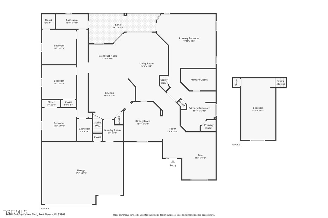 SPACIOUS 5-BEDROOM HOME WITH DEN & 3-CAR GARAGE IN COLONY LAKES - Located in the Colony Lakes in South Fort Myers, this spacious, 5 bed/3 bath home delivers the space, flexibility, and location you are searching for. The layout includes a den off the foyer and an upstairs loft currently functioning as the fifth bedroom, offering flexible space for work, guests, or additional living. Loft could also be used as a playroom, media room or home gym. Inside, the home is flooded with natural light thanks to large windows. Architectural details include high ceilings, decorative/lighted nooks for artwork, neutral tile flooring throughout the main living areas, and a flowing design that connects the great room, dining spaces, and kitchen. The kitchen serves as the hub of the home, featuring newer stainless steel appliances, a center island, breakfast bar, walk-in pantry, and ample cabinet and counter space overlooking the living area—ideal for everyday living and casual entertaining. For dining, choose between a formal dining room and a separate breakfast area just off the kitchen. The den provides flexible space for a home office, study, or reading room. The interior laundry room doubles as a mudroom with access directly to the garage. The master suite offers privacy and ample space featuring a tray ceiling and patio access. The en-suite bath includes the oversized walk-in closet, dual vanities, a soaking tub, a separate walk-in shower and private water closet. Three, generously-sized guest bedrooms are located on the opposite side of the home. Upstairs, the 11x20 bonus room currently used as a fifth bedroom gives you flexibility. A covered patio extends the living space outdoors with room to relax or entertain, and there is space to add a private pool, if desired - although the clubhouse is conveniently located right across the street. The three-car garage includes an additional storage closet, providing room for vehicles, tools, and recreational gear. The amenities of Colony Lakes include a clubhouse, in-ground pool, fitness center, and playground plus benches overlooking one of the main lakes. Benches are perfectly positioned to enjoy the sunset over the lake. The Colony Lakes is centrally located near HealthPark Medical Center, shopping, dining, schools, parks, and RSW International Airport, with the beaches of Sanibel, Captiva, and Fort Myers Beach just a short drive away. Community boasts low HOA fees and is pet-friendly. NOTE: The home never flooded during prior storms, offering added peace of mind. Furniture is negotiable. Schedule an appointment today.