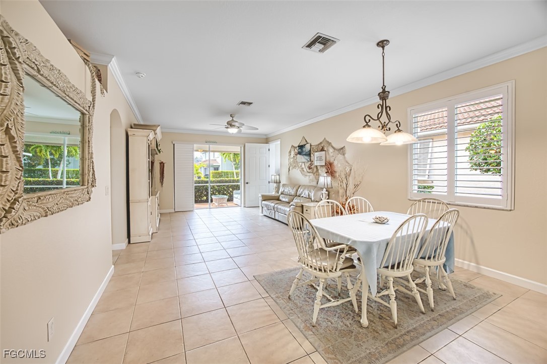 Welcome home to this beautifully charming three-bedroom plus den, two-bath villa situated on an oversized lot in the desirable gated community of Reflection Lakes. Step inside to a light-filled, open floor plan featuring tile flooring throughout the main living areas, along with classic plantation shutters and crown molding throughout the home. Enjoy breathtaking Southwest Florida sunsets from the screened-in lanai with desirable southern exposure, an ideal space to relax or entertain year-round. Reflection Lakes offers an impressive array of resort-style amenities, including a sparkling pool, tennis, pickleball, basketball and volleyball courts, a billiards room, fitness center, hobby center, and a full calendar of activities for the whole family.