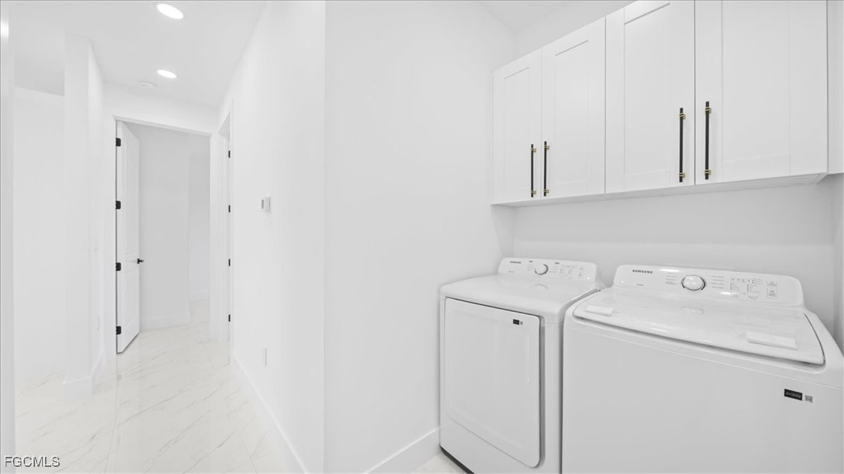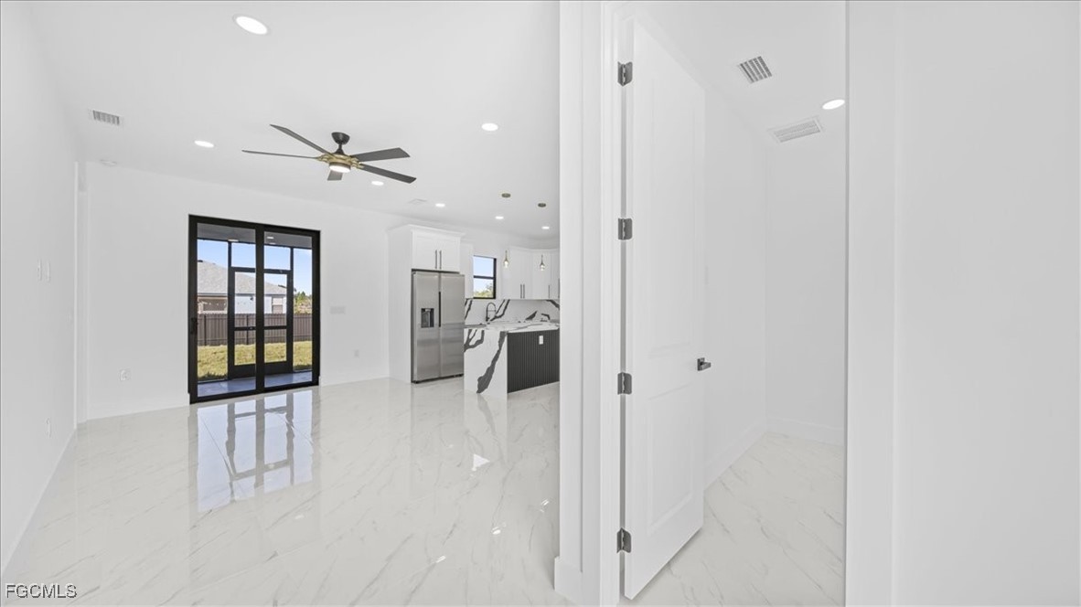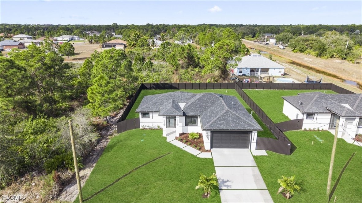 Welcome to your dream home in Lehigh Acres! This stunning single-family home boasts 3 bedrooms, 2 bathrooms, and a spacious 2-car garage. The modern office space is perfect for those who work from home or need a quiet place to study. The kitchen features beautiful granite counters and top-of-the-line stainless steel appliances, making meal prep a breeze. The sleek tile flooring throughout the home adds a touch of elegance and is easy to clean. Feel safe and secure with the included camera system, giving you peace of mind whether you're at home or away. The auto sprinkler system makes maintaining the lush landscaping a breeze, so you can spend more time enjoying your outdoor space. This home is perfect for families, professionals, or anyone looking for a stylish and comfortable living space. Don't miss out on the opportunity to make this house your home sweet home. Schedule a showing today and start envisioning your life in this beautiful Lehigh Acres property.