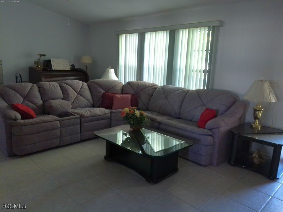 JUST REDUCED...GREAT LOCATION of this charming 3/2/2 close to Cape Coral hospital, yet quiet and peaceful, will sell this home. Across from lovely homes on Freshwater canal leading to a large lake. Split plan with big main bedroom, shower in adjoining bath. FIREPLACE in living room! Furniture is included. Kitchen has a large pantry. All assessments in and paid. NO flood insurance necessary, home is in a no-flood zone. Easy to show. Must see.