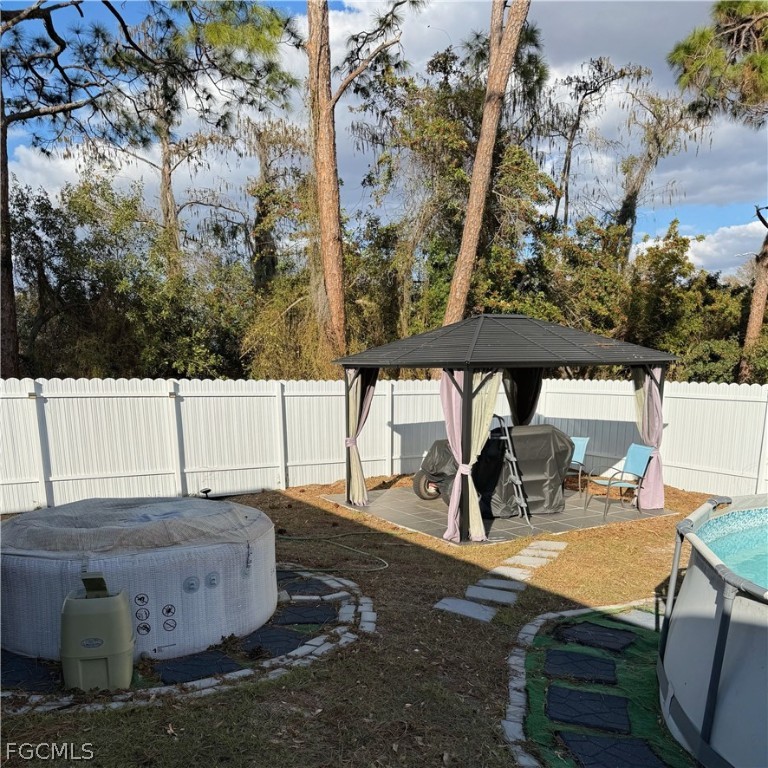 Beautifully maintained home with exceptional upgrades and outdoor living features! This freshly painted residence offers comfort, style, and privacy in a serene setting. The home includes an above-ground pool with a new sand filter, perfect for relaxing or entertaining, along with a gazebo, hot tub, and storage shed to complete your backyard oasis. The backyard is fully fenced with a white aluminum fence and backs up to greenbelt, providing added privacy with no future development behind the property. Enjoy evenings under the color-changing exterior soffit lighting, adding both ambiance and curb appeal. Inside, the home features bidets in every bathroom, Samsung front-load washer and dryer, and window fixtures and curtains included for a move-in-ready experience. Thoughtful upgrades and pride of ownership are evident throughout. An adjacent parcel is also available for purchase and can be included with the sale, offering a rare opportunity for additional space, future expansion, or investment potential. This property is a must-see for buyers seeking privacy, modern conveniences and enhanced outdoor lifestyle. Also conveniently located to shopping and schools.