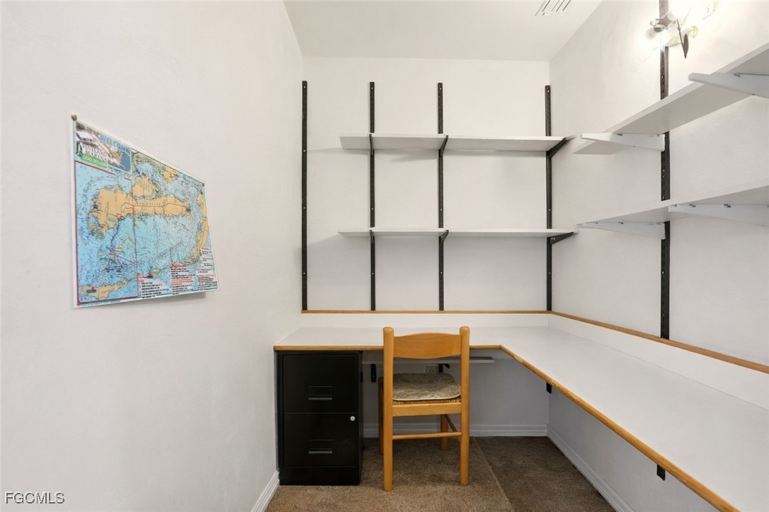 The kitchen includes a convenient flex area that functions well as a small office, pantry, or additional storage, adding versatility to everyday living. Living spaces are open and welcoming, making the home well suited for full time living or seasonal use.