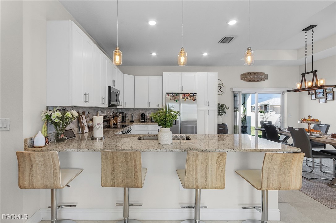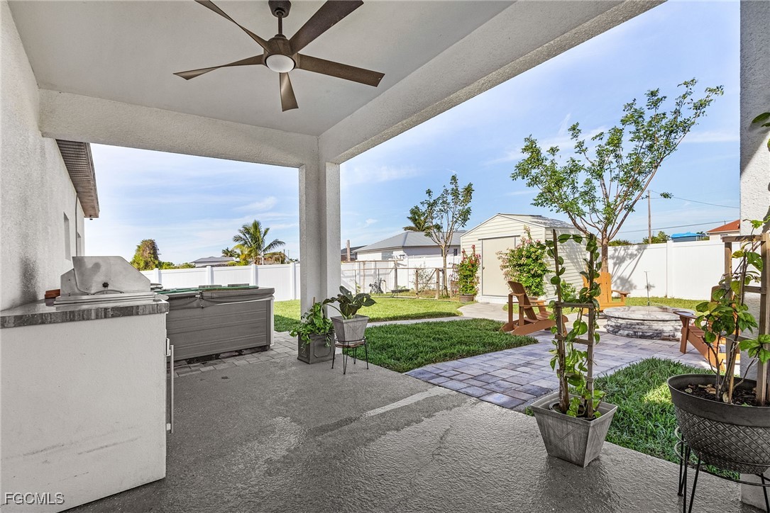 Discover your dream home in Northwest Cape Coral! This stunning spacious three-bedroom, two-bathroom new construction, built in 2022, features an inviting open-concept floor plan adorned with luxurious finishes. Enjoy outdoor living at its finest with a fenced yard, complete with a relaxing spa and a paved fire pit area—perfect for cozy gatherings. Don't miss this blend of modern elegance and outdoor bliss! Schedule your showing today.