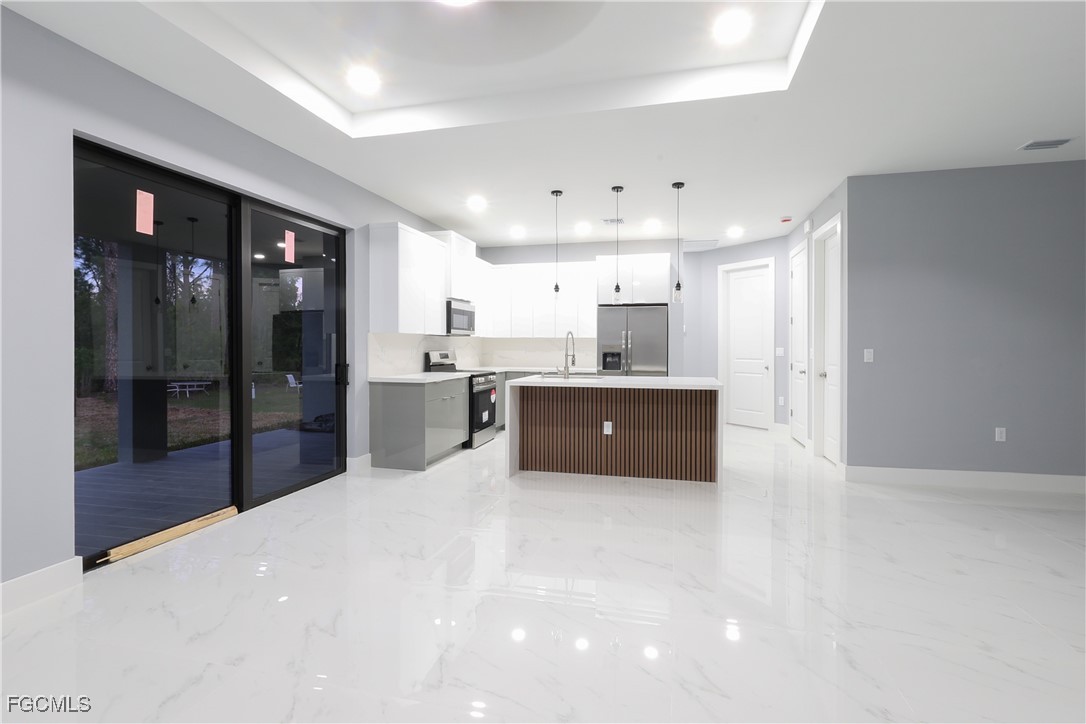 Discover this exceptional brand-new construction located in the desirable southwest area of Lehigh Acres, conveniently close to Lee Blvd. Just a few minutes from SR82, Daniels Parkway, and Fort Myers International Airport. This home features premium porcelain tile throughout, dual walk-in closets in the master bedroom, and a luxurious master bathroom with dual sinks and a walk-in shower. The modern kitchen is equipped with top-of-the-line stainless steel appliances, quartz waterfall countertops, and elegant European acrylic cabinets. Additional features include a bonus door in the garage and impact-resistant doors and windows. Don't miss this opportunity to own your dream home in a prime location!