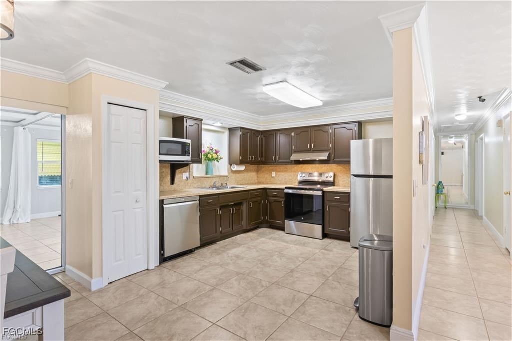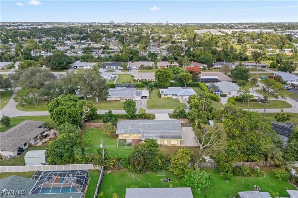 Enjoy effortless Florida living in this spacious 4-bedroom, 3-bath home set on an oversized lot in the heart of Fort Myers. The expansive backyard is a true standout, featuring mature fruit trees and endless possibilities—whether you envision a resort-style pool, lush gardens, room for the pets, boat/trailer storage, or simply a private outdoor retreat for relaxing and entertaining under the sun. Designed with privacy in mind, the property is fully fenced and hedged and includes a generous side yard with a 16-foot-wide gate and two 30-amp outlets—perfect for RV or boat parking and charging. A storage shed adds extra convenience for tools, equipment, or outdoor hobbies. Inside, the open-concept layout offers bright, inviting living spaces – a large Living Room with a Dining Area, open to the updated Kitchen. Down the hallway are 3 bedrooms, an en suite Primary Bedroom plus 2 generously sized Guest Bedrooms. The Dining area leads to a sunny Florida Room and to the left is the 4th Bedroom also with an en suite Bath. This entire area could also function beautifully as a private in-law suite or guest quarters, making the home ideal for multi-generational living. Additional highlights include a 2 car garage, large indoor Laundry Room and an inviting front screened porch. Electrical was updated 2024, re-roofed 2013. Located in Fort Myers Villas a quiet, established neighborhood, this home offers easy access to shopping, dining, schools, and major roadways— approximately 20 minutes to RSW International Airport, about 20 minutes to Ft Myers Beach and Sanibel or to the River District of downtown Fort Myers.