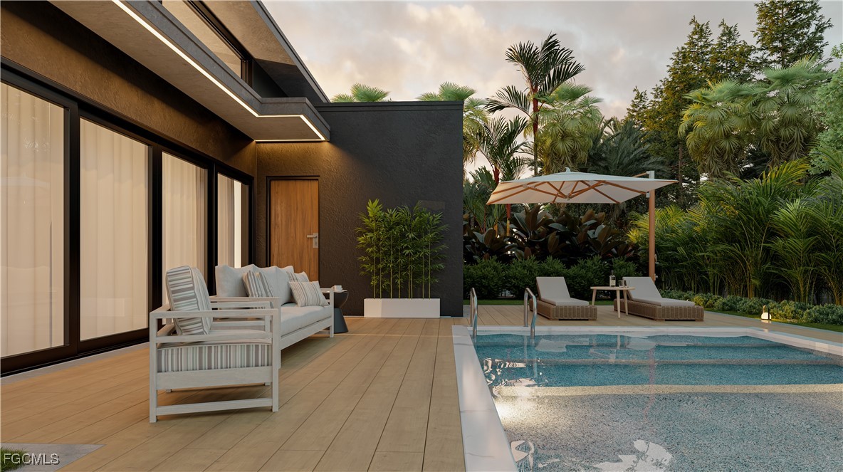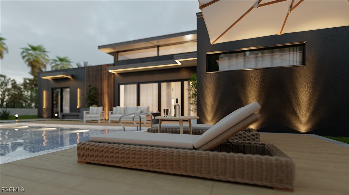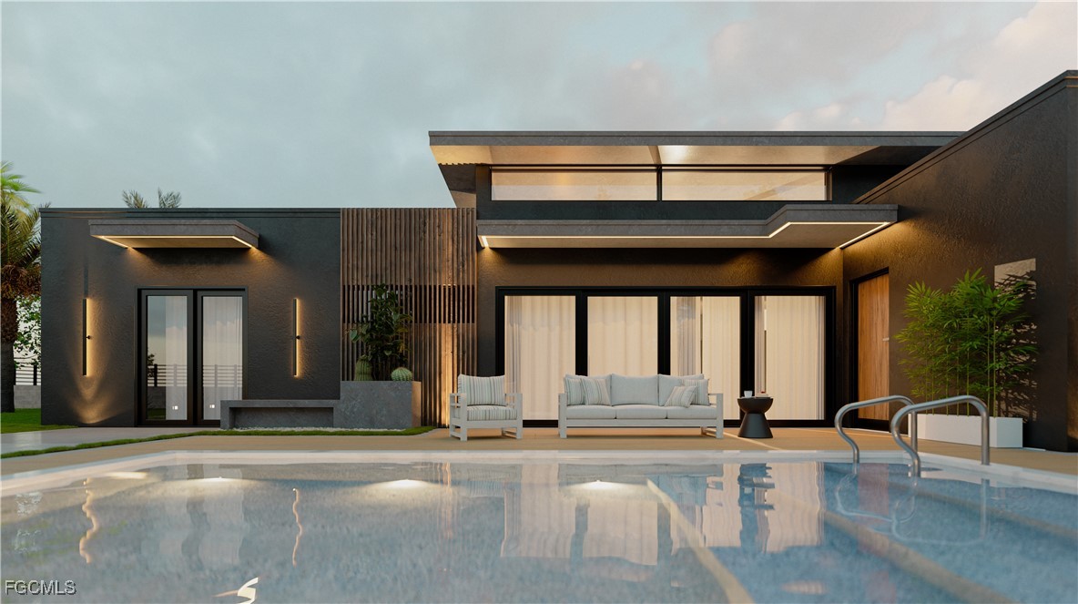 Stunning brand-new modern residence located at 3491 Meadow Rd, Lehigh Acres, FL 33974. This architectural villa offers 4 bedrooms, 3 bathrooms, and a 2-car garage on an oversized 12,366 SF lot, featuring approximately 2,056 SF of living area. Designed with clean contemporary lines and built using light-gauge steel-frame modular construction for durability and efficiency. The home showcases ceramic and tile flooring throughout, an open-concept layout, designer kitchen with island, and elegant living spaces filled with natural light. Enjoy your private outdoor oasis with covered porch, pool deck, and pool—perfect for entertaining or relaxing. Modern facade, paved driveway and walkways complete this exceptional property. Offered at $675,000. A unique opportunity to own a stylish new construction in Lehigh Acres—schedule your showing today.