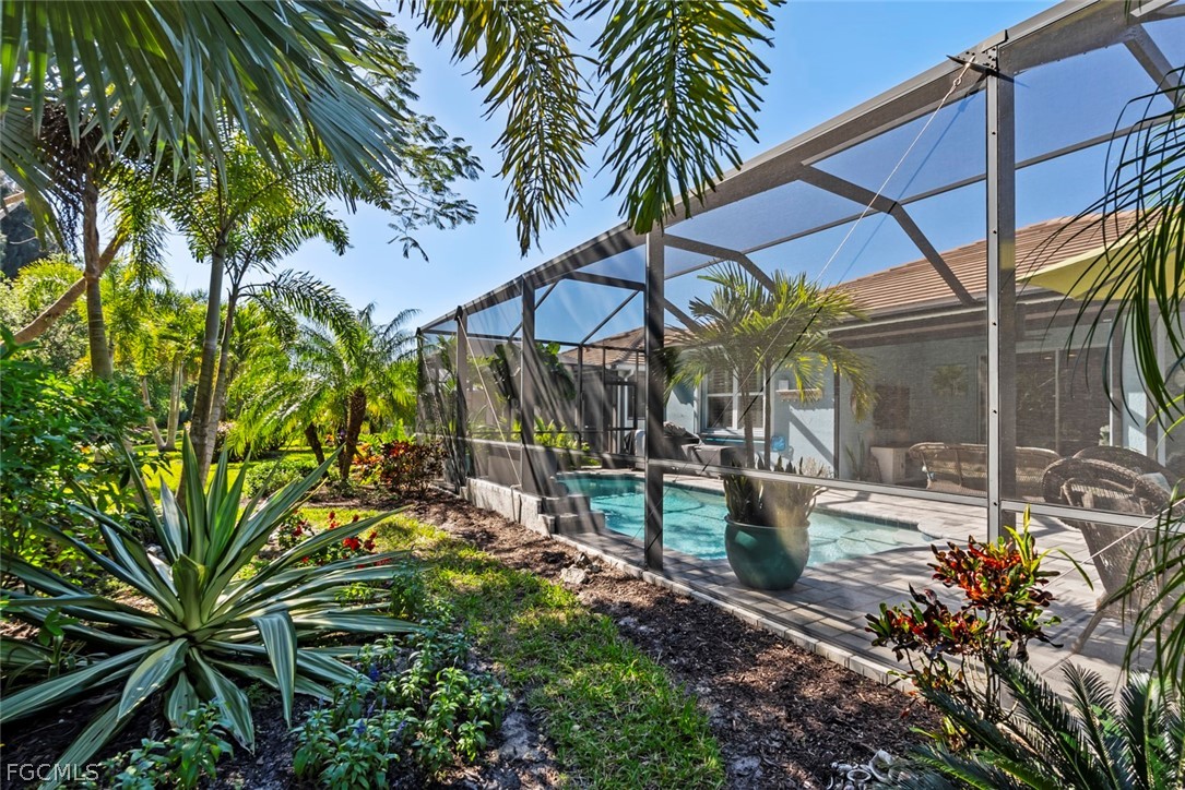 Step outside to your own private backyard oasis, where lush tropical landscaping, highlighted by palm trees, vibrant crotons, and striking agave plants creates a serene and picturesque backdrop for the screened-in pool and lanai. The newly added outdoor kitchen with grill makes alfresco dining effortless, while the carefully planned landscaping enhances both beauty and privacy.