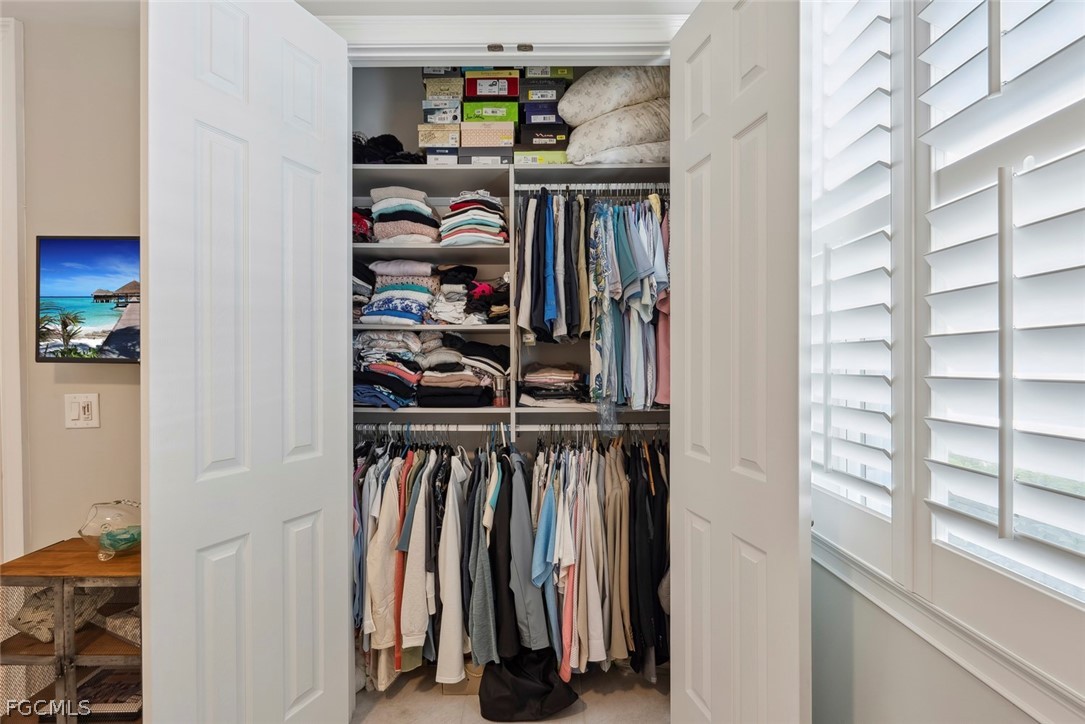 The primary suite offers a relaxing retreat, complete with a dual vanity, granite countertops, mirrored medicine cabinets, and beautifully customized closets by California Closets. Every closet throughout the home has been professionally designed for optimal organization.