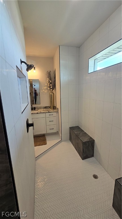 The home offers cathedral ceilings, 8-foot doors, and a grand, open layout. The primary suite includes his-and-hers custom walk-in closets. The primary bathroom features a walk-through shower, freestanding tub with a floor-to-ceiling accent wall, and an oversized vanity with ample storage.