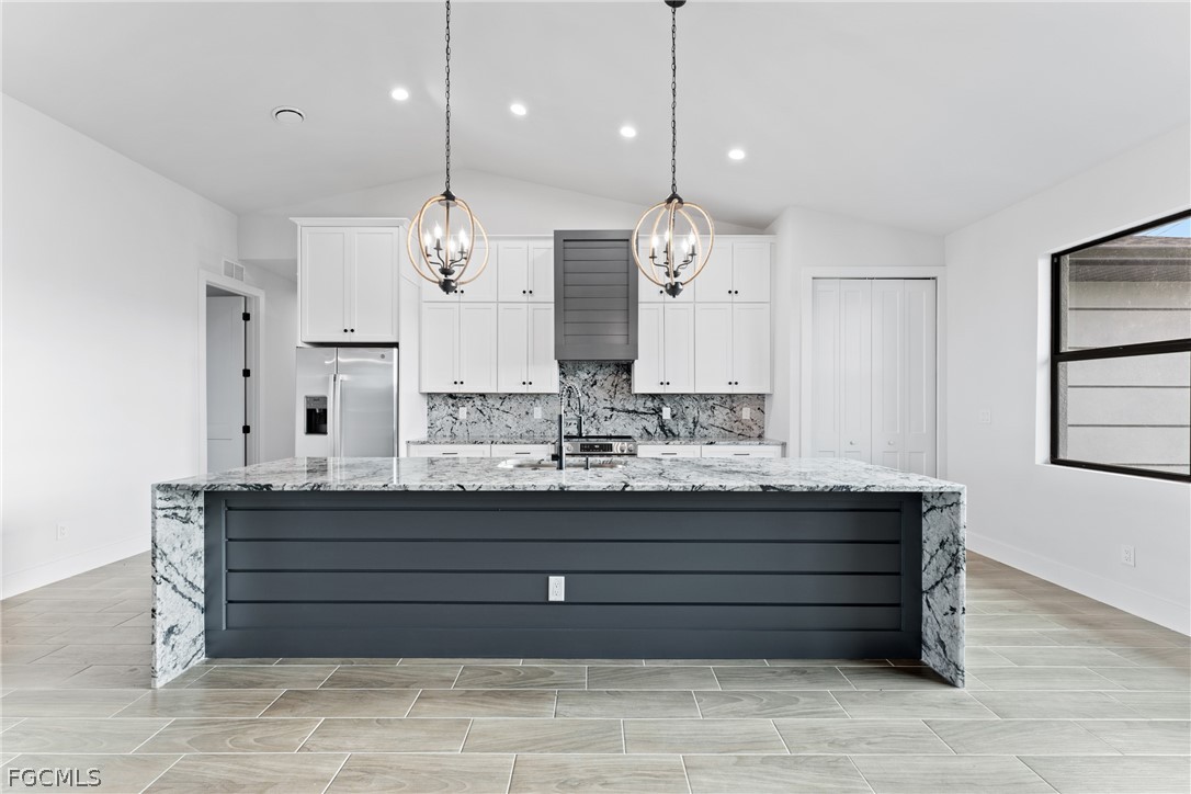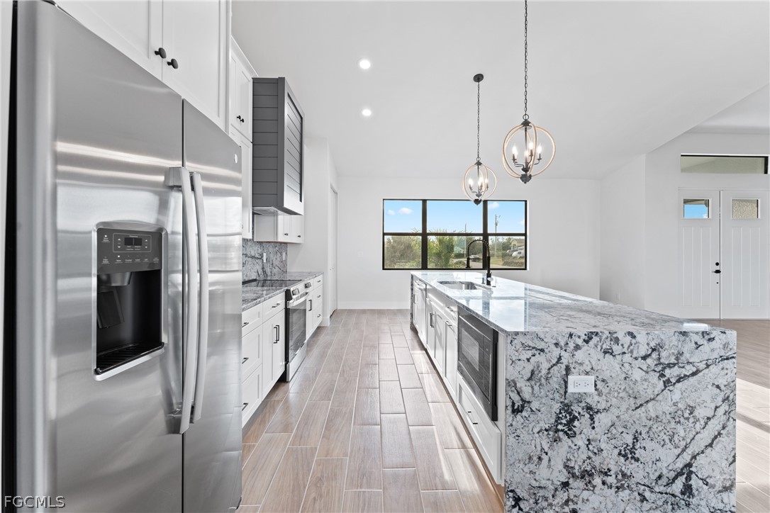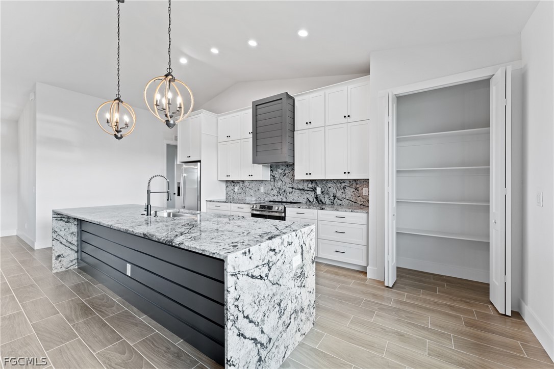 NEW ONE OF A KIND CUSTOM HOME. This residence features double-stacked kitchen cabinetry, a 12-foot island, granite countertops, a custom statement hood, pantry. Additional highlights include tile flooring throughout, a fireplace, and an appliance package.