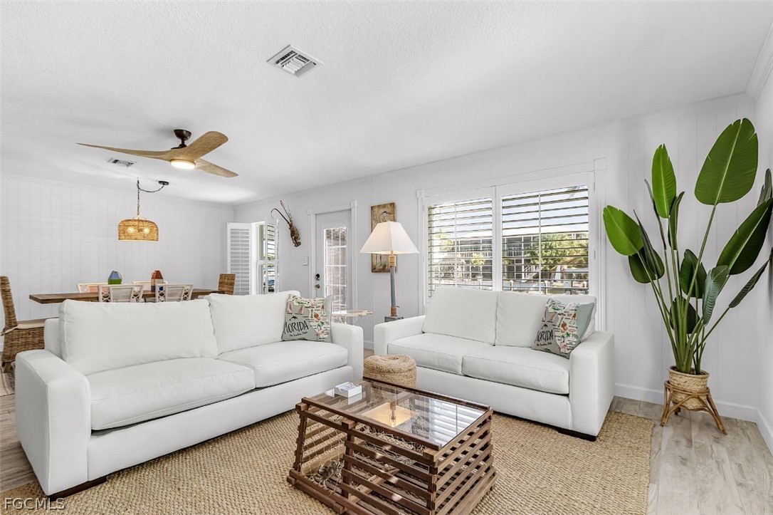 This is a rare opportunity for a beautiful island home with very Quick Direct Gulf Access. The property is located in the fisherman's/boater's paradise of Bokeelia/Pine Island. This quaint island style cottage is being sold fully furnished and features 2 bed/2 bath, large/open living room and dining room, a large screened-in lanai, plus a small garage which is perfect to store all your fishing supplies and a golf cart, or motorcycles. Overlooking the canal is a boatlift, firepit and BBQ shed. Recent upgrades include a new roof, new AC, impact windows, pavers, amazing kitchen with high-end cabinets, stainless appliances, quartz counter-tops, updated bathroom, plantations shutters, and tile plank flooring. Now, the best part, once on your boat, you are less than 5 minutes to the open water of Charlotte Harbor. You can be in Boca Grande Pass fishing for Tarpon or having lunch on famous Cabbage Key within 15 minutes. This is a true boaters paradise, and won't last long. Make a showing appointment today
