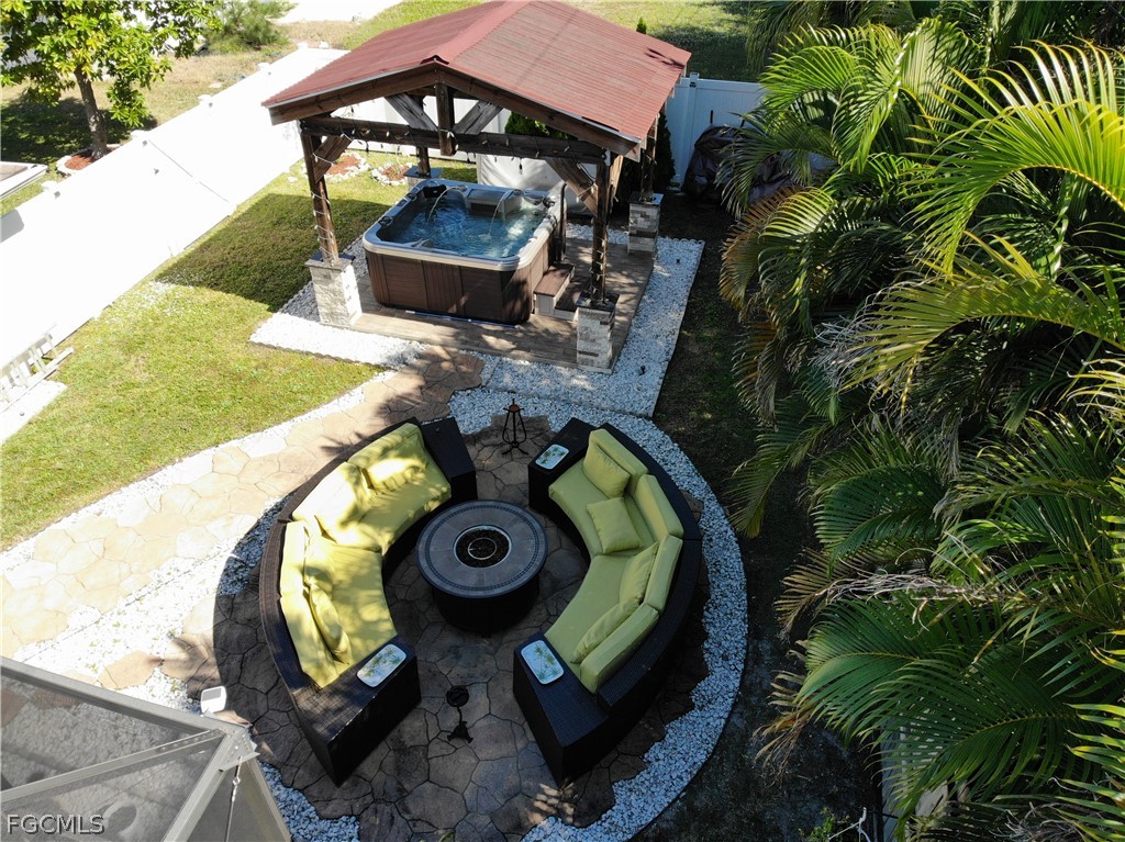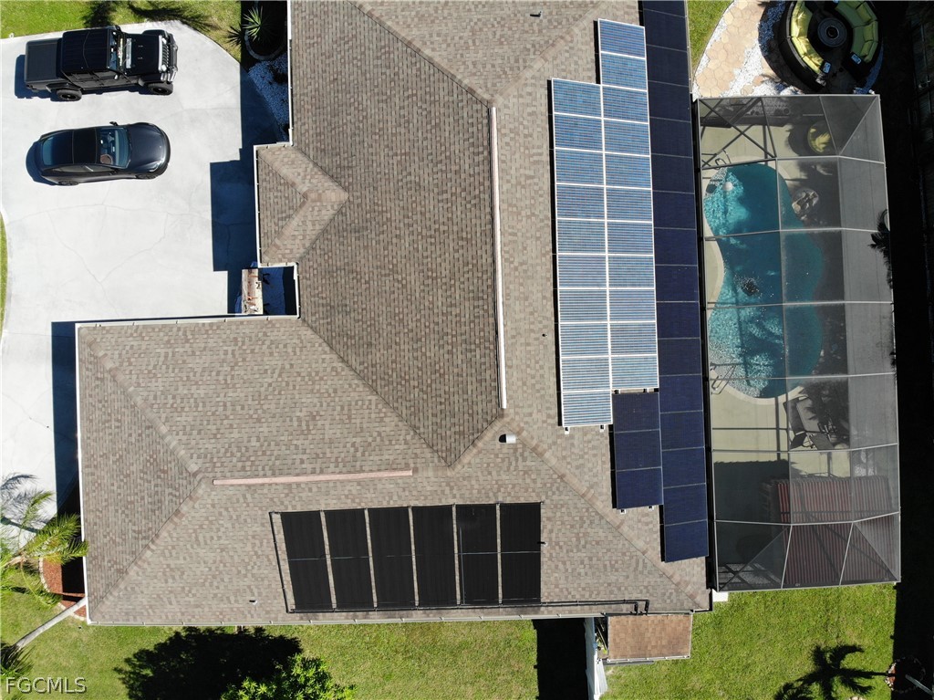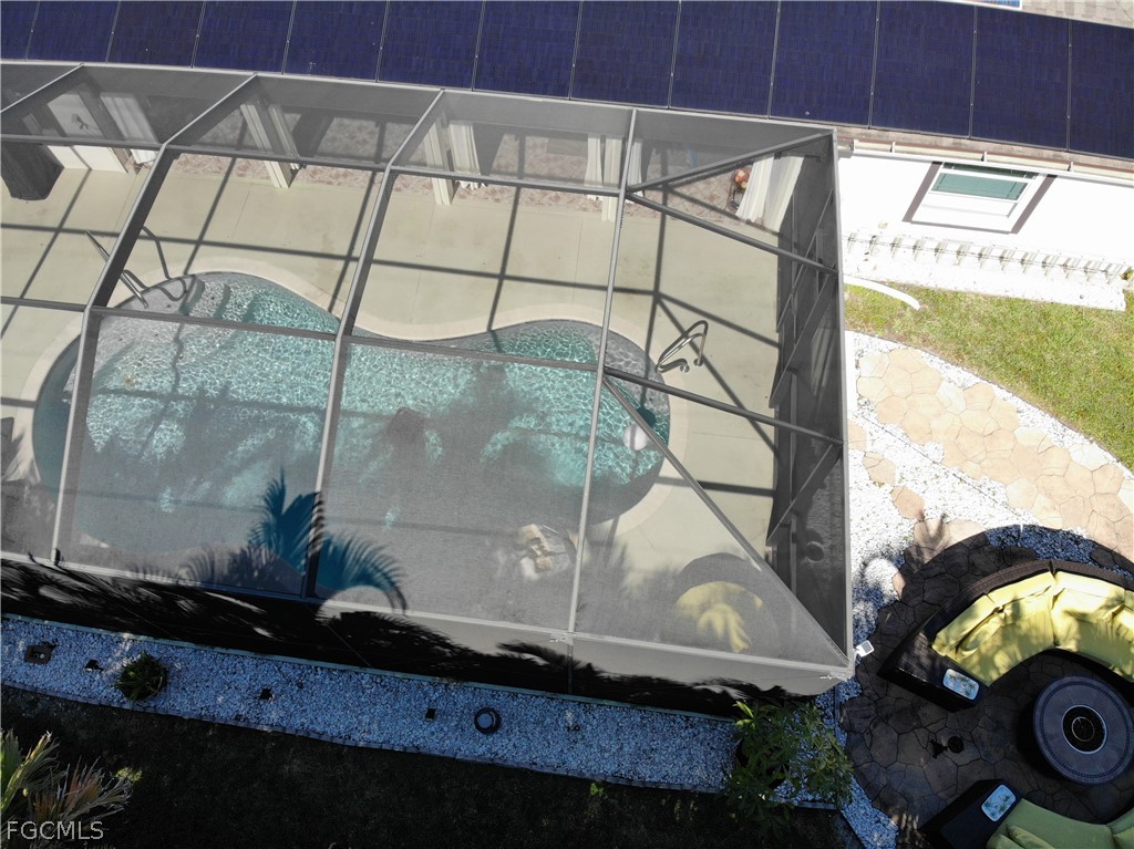 Fully furnished home featuring a resort-style backyard with swimming pool, solar and electric pool heater, outdoor tiki hut bar, jacuzzi area, and pool table. Equipped with 12 kW solar panels for energy efficiency. Perfect for entertaining or turnkey living.