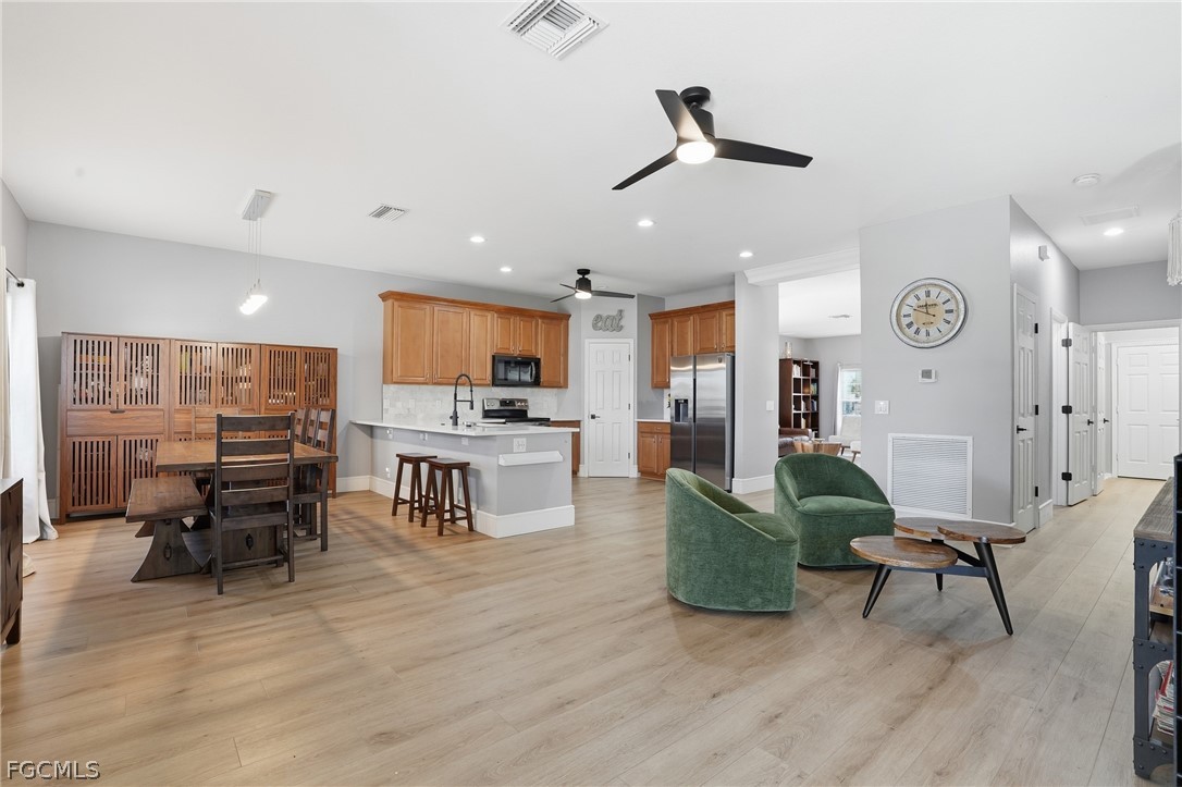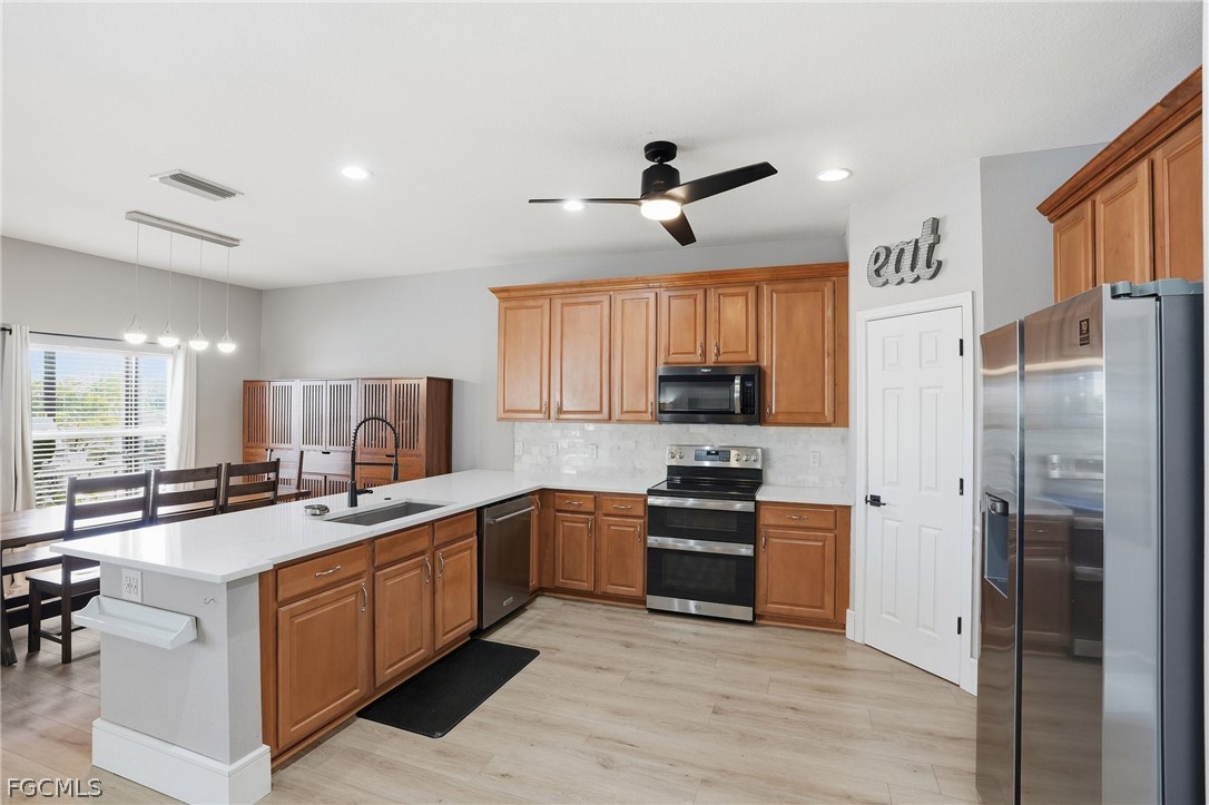 Located on a cul-de-sac, on the most desirable, expansive lakefront lot in Valencia Lakes, this FULLY REMODELED residence delivers exceptional scale, finish, and outdoor living rarely found within the community. Offering 5 bedrooms plus a den, 3 full bathrooms, and one half bath, the home combines generous living spaces with refined upgrades throughout.