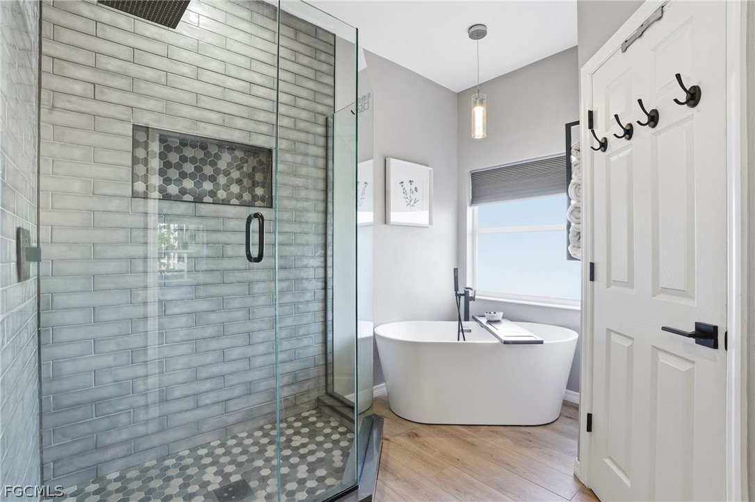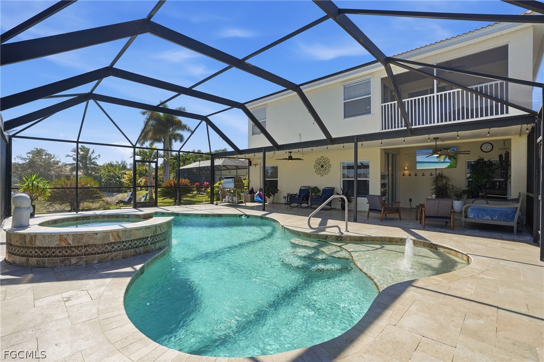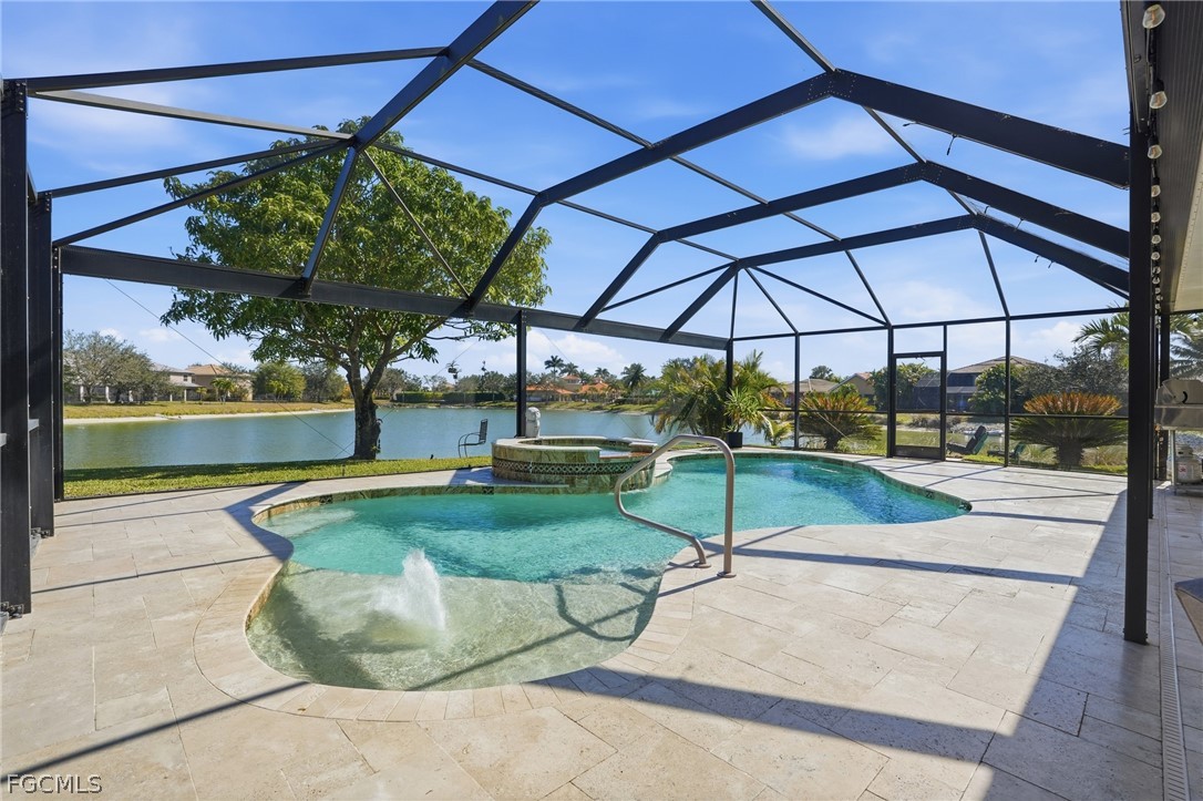 Outdoor living is where this home truly shines. The resort style pool and raised spa overlook a wide, sparkling lake, offering uninterrupted water views and a tranquil setting. A full length covered lanai spans the entire rear of the home, allowing for shaded outdoor enjoyment while still embracing the pool, spa, and breathtaking backdrop. The infinity screen enhances the view and creates a seamless connection to the surrounding scenery.