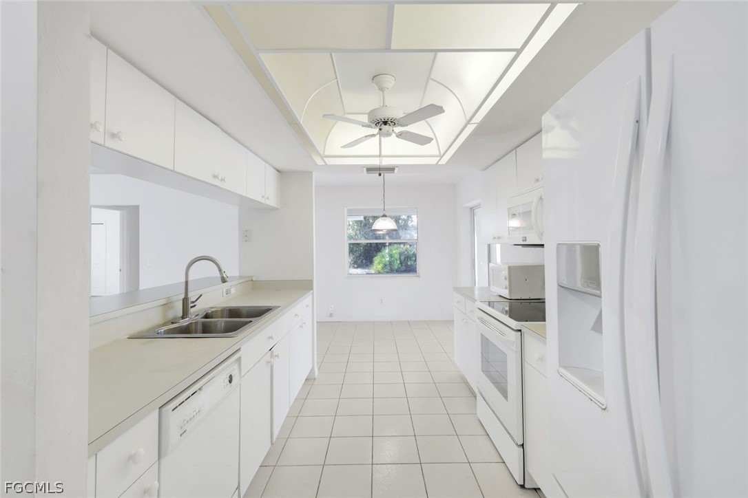 The galley-style kitchen offers generous counter space, a convenient pass-through/breakfast bar, and an eat-in dining nook. Beyond the kitchen is a large, screen-enclosed lanai, perfect for an extended living or dining area. Imagine enjoying your morning coffee or evening cocktails, overlooking your generously sized backyard - with plenty of room for gardening, play, or future outdoor enhancements like an outdoor kitchen or a pool.