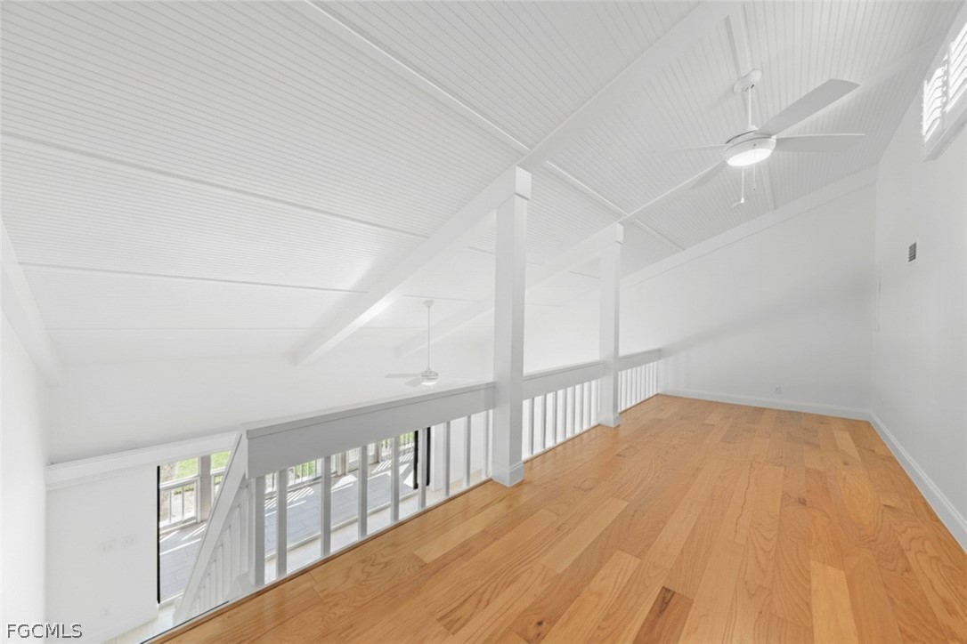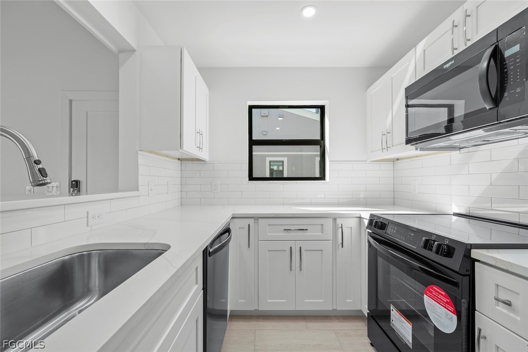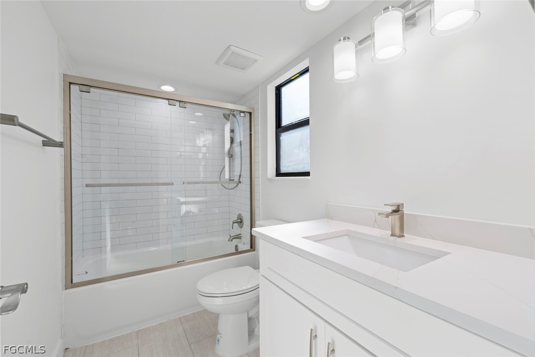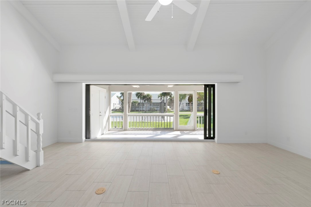 Stylish touches include white shaker cabinets, quartz counters, tile flooring, beadboard vaulted ceilings, and black stainless steel appliances, alongside a full-size washer and dryer. The guest bath boasts a walk-in shower with dual heads, and new hurricane-rated windows and doors enhance comfort and safety. Central AC provides year-round comfort.