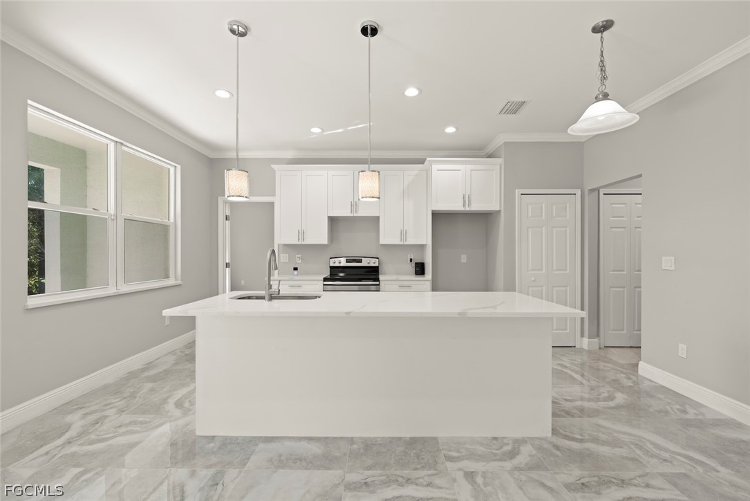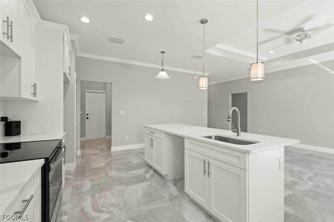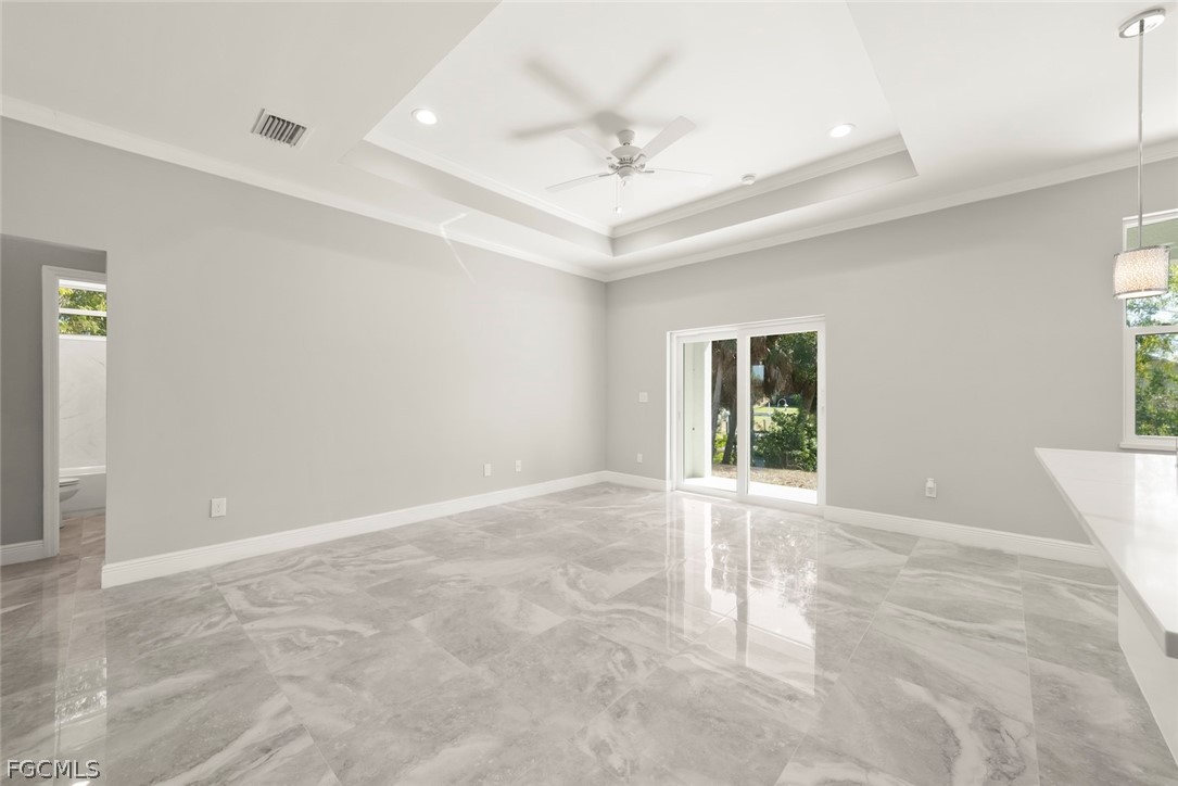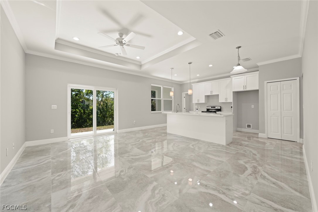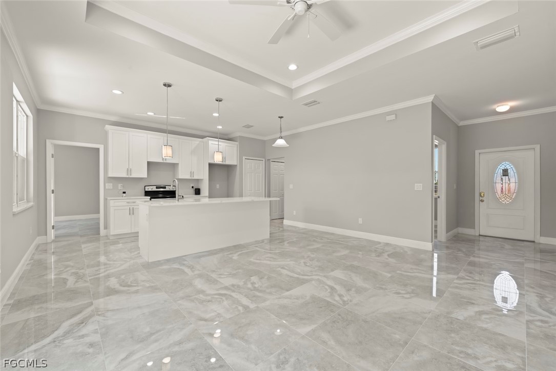 Built in 2023, this 3-bedroom residence with a den and 2 baths offers a refined take on modern waterfront living. Designed with tile flooring throughout and a light, open layout, the home is filled with natural light, enhanced by its desirable southern exposure. Enjoy Gulf access with only two bridges to the Caloosahatchee River, providing effortless boating and an exceptional coastal lifestyle. The living spaces extend seamlessly to an open patio, ideal for relaxing outdoors or entertaining in a serene setting. With contemporary construction, thoughtful design, and a bright, airy ambiance, this home delivers the perfect balance of elegance, comfort, and Florida waterfront living.