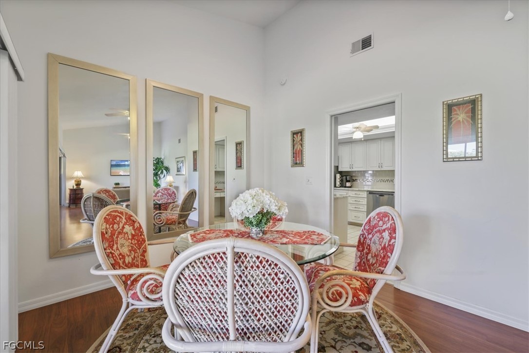 Don't miss this BEAUTIFUL TWIN VILLA, in the RARELY AVAILABLE Tall Grass Village of Cross Creek Country Club, ideally poised on the 4th hole! The overall value of this property is unmatched with METAL TILCOR SHINGLE ROOF (2023 and maintained by association) and its 2-car GARAGE with NEW DOOR (2025) is unique to this subdivision. This stunning home offers nearly 2,000sqft under air, including 2 bedrooms, a MASSIVE DEN, and 2.5 bathrooms. All furnishings are negotiable for a truly MOVE-IN-READY experience! The kitchen has been beautifully UPDATED with solid WOOD, white SOFT-CLOSE cabinets, GRANITE counters, and STAINLESS STEEL appliances to provide a modern touch. The TILE and WOOD LAMINATE flooring throughout the home adds a touch of elegance, while the carpeted ENCLOSED LANAI offers plenty of space for entertaining guests or relaxing with loved ones. The LAUNDRY ROOM WITH SINK makes chores a breeze, but the real highlight of this villa is the BUNDLED GOLF membership You can enjoy the 18-hole executive course, advanced tee times, leagues, cart included, and a discount at the pro shop! This active and pet-friendly and rental-friendly community also comes with tennis, pickleball, bocce ball, clubhouse with pool/spa, restaurant/bar, cable/internet, lawn care, and so much more. All those inclusions, LOW HOA fees, LOW TAXES, NO FLOOD INSURANCE NEEDED, and LOCATION truly make this home a BEST VALUE BUY. Cross Creek is perfectly positioned off the popular Daniel's Parkway--ample shopping, dining, and entertainment are moments away while TWO spring training facilities, RSW International Airport, and the gorgeous beaches of SWFL are within a 30-minute drive. Live a life of luxury and relaxation in this beautiful "condo-villa", where every day feels like a vacation!