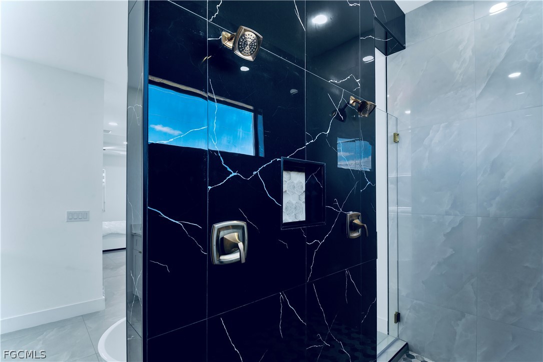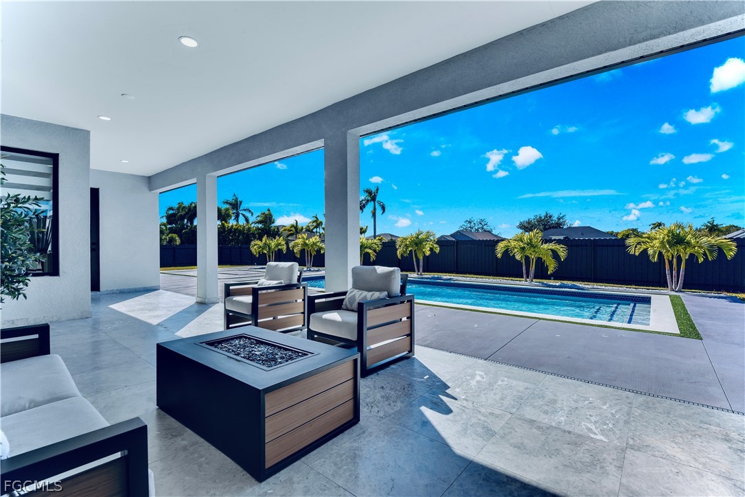 welcome to this exquisite (2025) built LUXURY 4/3 HEATED POOL FULLY FURNISHED home nestled away on an admirable 6ft METAL Fenced TRIPLE lot property featuring a sought out TRIPLE car garage with EPOXY flooring & an awarding wrap around circle driveway. CITY WATER & SEWER with the ASSESSMENTS paid & NOT in a flood zone! These grand elevations of high tray ceilings & 8 Ft doors plus refreshing PICTURE FRAME windows spotlight an astounding Rainfall QUARTZ countertops breakfast bar & backsplash, soft close SHAKER cabinets with stylish hardware, High ends STAINLESS STEEL appliances, rewarding recessed & pendant lighting, HIGH EFFICIENCY washer & dryer under air with vanity sink + storage, and MODERN oversized porcelain tile through out. It has been nicely landscaped and also highlights IMPACT windows & doors, an Attractive accent tiled wall with a desirable SOAKING tub & dual access frameless glass impressively tiled walk around shower with Multilple shower-heads, Premium fixtures, DUAL Walk-in closet with built in organizers, LED backlit custom mirrors & spacious dual sink vanity, MOTORIZED Zebra black out window treatments, UPGRADED commodes, irrigation system, and an inviting OUTDOOR kitchen with an enticing back patio great for entertaining. This PRIME location is centrally located Just minutes to all major amenities & quick commute fort Myers. Schedule your private showing today. The vacant lot directly behind has borrowing owls unlikely to built on at this time.