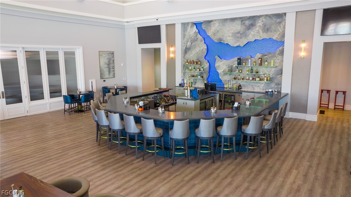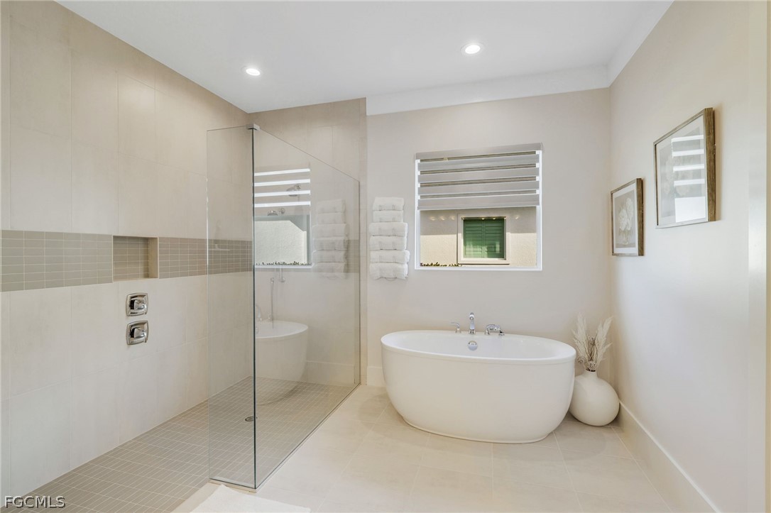 13119 Cerulean Ct is a masterful Estate home on a premium southern exposure lake view lot, built by the renowned Stock Development and offered fully furnished. Homes are rarely available on this street, which consists of just 11 custom built homes, no traffic, stunning mile-long southern lake views with preserve on the other side, and no homes across the street. This coveted Sterling model offers open concept living, four private ensuite bedrooms plus a den, a luxurious master retreat, and a massive outdoor living area spanning the entire width of the home. Custom accents, trim work, and upgrades have been added to every part of the home, creating an inviting and refined atmosphere. The kitchen features upgraded two-tone cabinetry, custom quartz countertops, designer backsplash, built-in appliances with a gas cooktop, a spacious walk-in pantry, and a hidden prep pantry with a beverage center. The spectacular master suite includes dual walk-in closets, a large bathroom with dual vanities and a separate shower and tub, and French doors from the bedroom leading to the covered lanai. The upgraded travertine pool deck stretches the full width of the home and around the back of the pool, providing plenty of space for both covered and uncovered furnishings without compromising walkability. The custom heated pool features a 360 degree spillover spa and added waterfall bowl features to create a serene atmosphere overlooking the mile-long lake view. For peace of mind during storms, the home is equipped with impact windows and doors, a whole-home generator, automatic hurricane rolldown screens on the back lanai, and the lowest risk flood zone in Southwest Florida. This lot allows for a private dock to be built with an optional boat lift. WildBlue's amenity peninsula provides panoramic views of WildBlue Lake and features a resort-style pool, separate lap pool, sandy lakeside beach, fitness center with studios, locker rooms with saunas, spa, a full-service restaurant and bar, poolside bar and grill, tennis and pickleball courts, a pro shop, basketball, boat ramps to over 800 acres of freshwater lakes, boat slip rentals, kayak storage, and more. Schedule your private showing today!