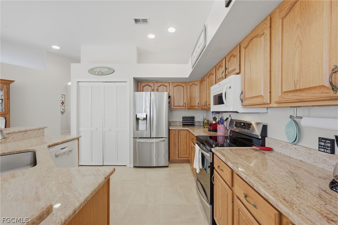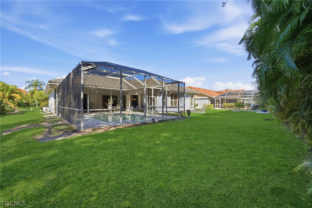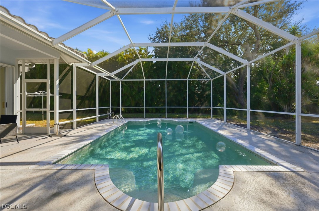 This is the Cross Creek Estates Pool home you have been waiting for! Light and Bright, 3B+Den pool home with 4 sets of sliders (3 are fully pocketing), a Saltwater heated pool (New Htr, Pump & Timer in 2024) w solar cover, Updated Island kitchen with wood cabinetry featuring pull outs & lazy susan, granite counters, updated appliances include an Induction Cooktop/Oven with a built in Air Fryer, Full Hurricane protection with easy accordian shutters and new hurricane rated garage door (2022), updated tile roof (2016), soffit & gutters (2022), Trane AC, Updated Master Bath features a soaking tub & floor to ceiling tiled shower, Exterior and Interior recently painted, new laminate flooring, pleated solar shades for energy savings, new wtr htr (2025) and more. Wonderful open plan great for entertianing with a large L shaped covered, screened lanai and pool deck. Split plan offers lots of privacy for family and guests. Enjoy Friendly neighbors and a Super convenient gated community offering sidewalks, full clubhouse amenities: Jr. Olympic lap pool & spa, fitness center, tennis, pickleball, dog park, bocce, racquetball, playground, food truck & community events & pay for play golf & opt. low fee membership ($1k/yr!) at Cross Creek CC ! Super Low HOA fees (just $2,240/yr!), OUT of the flood zone, no CDD or city taxes & close to Gulfcoast Hospital and medical complex, Whole Foods, shopping, dining, SWFL Int'l airport and a short drive to area beaches.