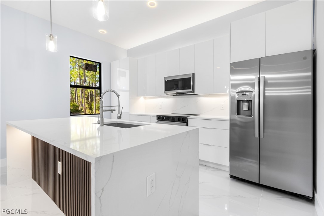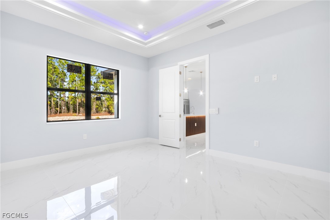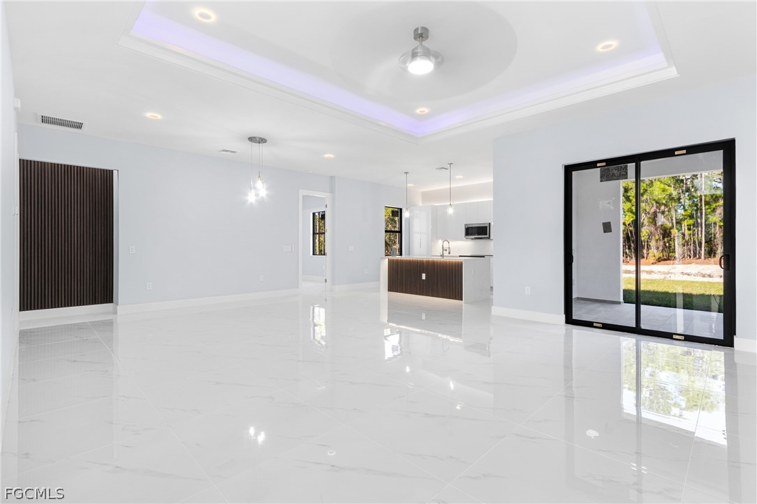 Move right into this stylish new construction home set on a spacious lot with peaceful natural views! This bright, open-concept layout features glossy tile floors, tray ceilings with soft LED accent lighting, and plenty of natural light throughout. The sleek kitchen is perfect for gathering, with quartz countertops, a waterfall island, modern cabinetry, and stainless steel appliances. The primary suite offers a relaxing retreat with a custom walk-in closet and a spa-like bath with dual vanities and a glass walk-in shower. You’ll also love the spacious secondary bedrooms, impact windows and doors, energy-efficient features, epoxy-finished two-car garage, and a covered patio overlooking a large backyard with plenty of room to add a pool or create your own outdoor oasis. Modern, comfortable, and move-in ready!