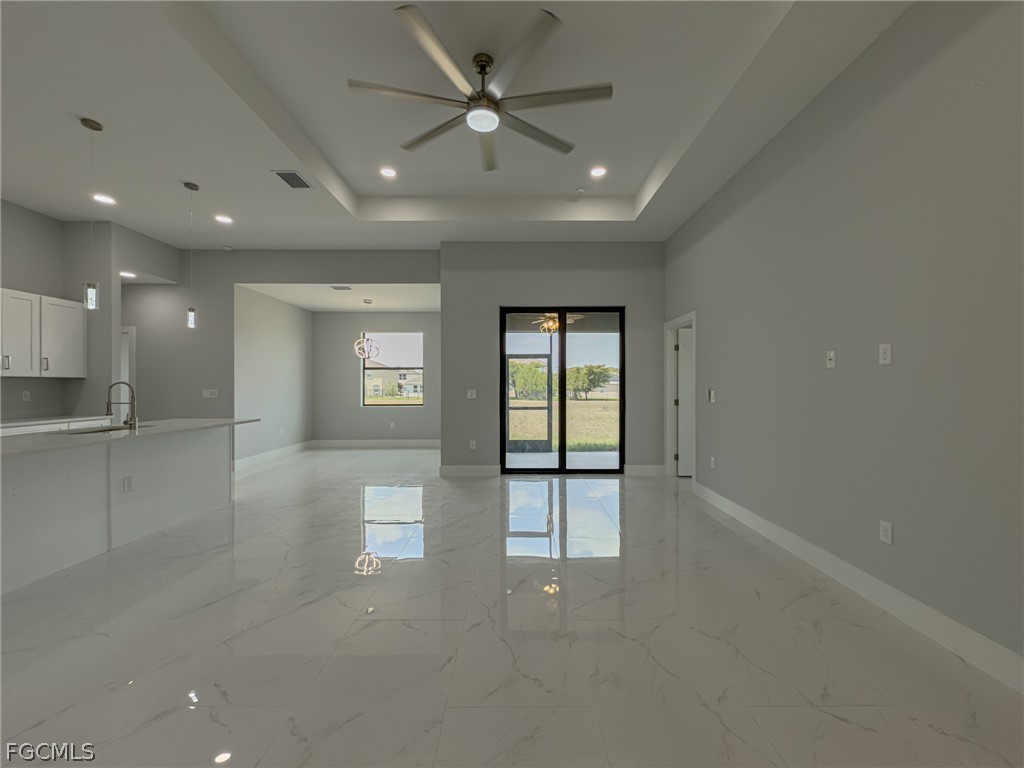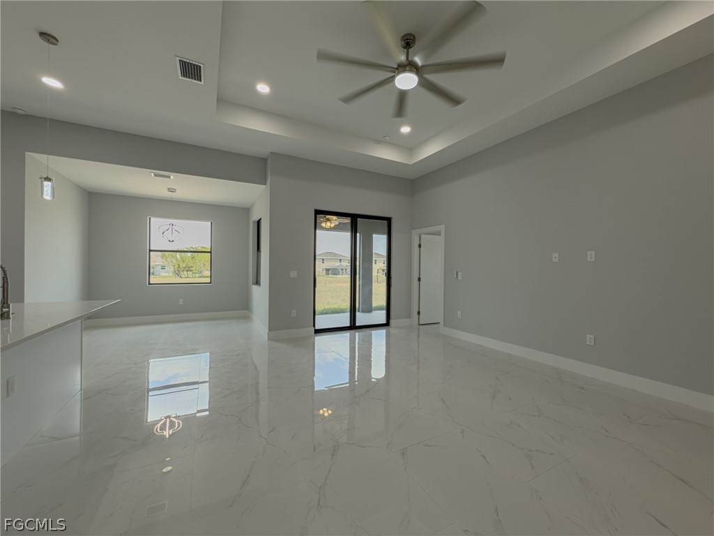 meals while staying connected to family and guests. The spacious living areas are enhanced with elegant porcelain floors that add a touch of