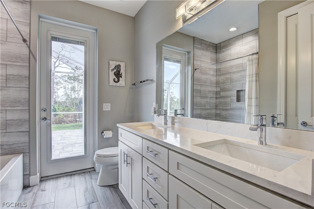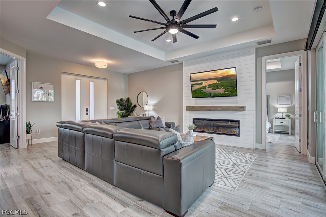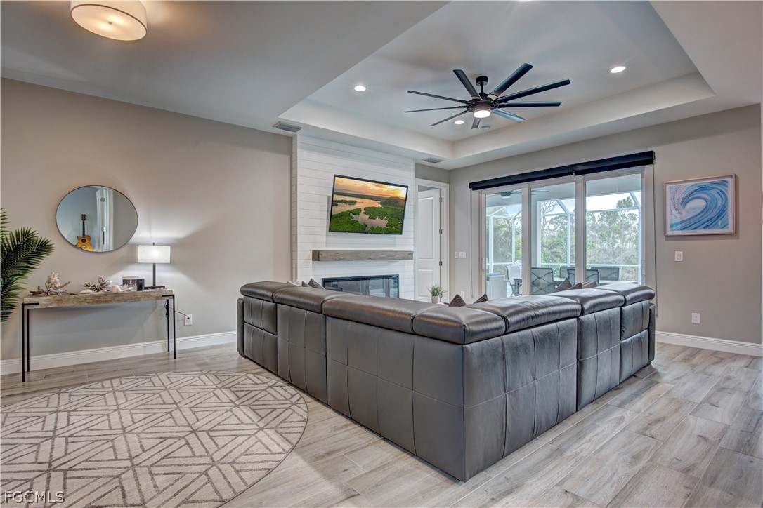 Built in 2021, this 3-bedroom + den, 2-bath pool home is better than new with over $70,000 in recent improvements. Backing to a 50-acre nature preserve, the backyard offers peaceful views, abundant wildlife, and no rear neighbors. Peace of mind and low insurance costs come from impact-resistant windows and sliders, newer construction, and higher elevation. FEMA has removed the home from the flood zone—flood insurance is not required. Upgrades include a freshly painted interior, epoxy-coated garage floors, brand-new GE Profile appliances, and an electric fireplace feature wall. Smart features include a Ring doorbell, smart lock, Nest thermostat, and myQ garage system with video keypad. Additional highlights include whole-house gutters, a new water heater (2025), whole-house surge protection (LCEC), GenerLink transfer switch, garage storage racks, and upgraded laundry cabinetry. The guest bath provides convenient pool access, and the pool features a color-changing LED light. A rare combination of modern comfort, smart technology, natural preserve views, and true peace of mind.