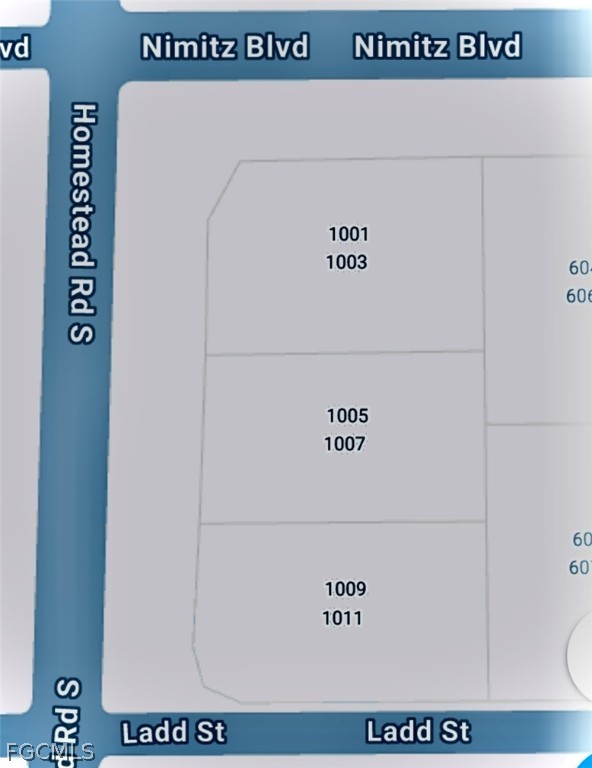GREAT LOCATION on paved road with utilities available, very Unique SIDE BY SIDE BY SIDE DUPLEX properties in the HIGHLY DESIRABLE south side of Lehigh Acres close to 82 and major amenities with a quick commute to Fort Myers. The ADJACENT Lots 1001/1003 & 1009/1011 Homestead blvd are also for sale to build multiple brand new DUPLEXES side by side! Come build your DREAM HOME or INVEST today!