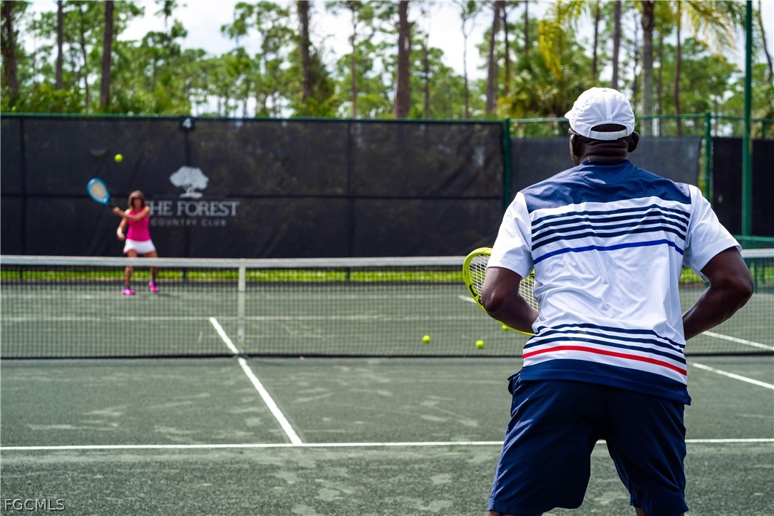 Lovely, End Unit Villa, 3 Bedroom, 3 Full Bath, Attached 2 Car Garage, Extended Screened Lanai, Built In Jetted Spa! Being Sold TURNKEY- NO FLOOD EVER in Dwelling. COA Just Lowered the Quarterly Fee. Located NEXT to The Heron Coach Community POOL- Steps to the POOL and Home to Your Personal Heated Spa! Grill Your Steaks at The Pool or at Home! Extra Brand New Refrigerator in the Epoxy Floored Garage with New Storage Cabinets. New Concrete Tile Roof, Paint, Super Screen Extended Lanai, Paver Deck. Your Own Mailbox out Front, Your Own Garbage Cans and Recycle. Screened Front Entry Way Porch. This Private Property is Just Around the Corner From Ruthies Park. Bring Your Dog of ANY Weight! No weight restrictions. Over 8 Miles of Sidewalks, Dog Stations Located around the Perimeter of The Forest. The Country Club is OPTIONAL- New Membership Options for NEW Residents- UP TO $10,000.00 OFF. Bring Your Bikes! Bike to Lakes Park for Market Day! Regional SW Airport Just 15 Min, Sanibel Island 20 Min, FMB 25 Min, Restaurants and Shopping Everywhere! Our 36 Holes of Championship Golf are Amazing! We are Audubon Certified! Wild Life Everywhere! Come Live & Play In The Forest! Some amenities listed require membership in the Country Club. Master Association Fee IS Included in the COA Quarterly Fee.
