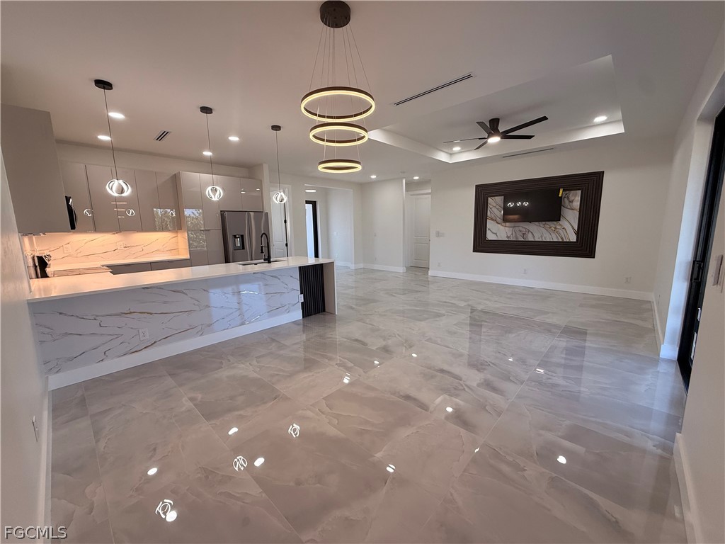 New construction with 3 bedrooms, 2 bathrooms, 2 car garages plus storage space, with 1,525 sq ft under air. This modern home features an open-concept layout and a designer kitchen with quartz waterfall countertops, custom cabinetry, and marble-style backsplash. Bathrooms include vanities and quartz and contemporary finishes. High ceilings, neutral tones, quality craftsmanship and tile floors throughout. Located in the prestigious waterfront community of South Gulf Cove, there is a boat ramp, with access to the Bay and Ocean. Only minutes to Boca Grande's and Englewood's white beaches, marinas, boat ramp, fishing, golf courses, restaurants, and shopping.