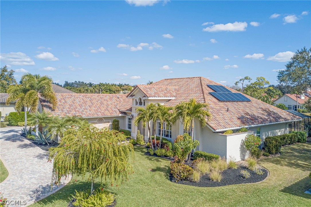 The outdoor oasis features a custom free-form pool, recently enhanced with a brand-new pool heater and supported by a full solar energy system for maximum efficiency and significantly reduced utility costs for the home. Interior highlights include stunning Cherry wood floors, volume ceilings, and a luxurious master wing featuring marble flooring and 2 walk-in closets. Wildcat Run provides a world-class lifestyle with an Arnold Palmer Signature golf course, tennis, pickleball, and dual dining venues—all just minutes from Miromar Outlets and SWFL International Airport.