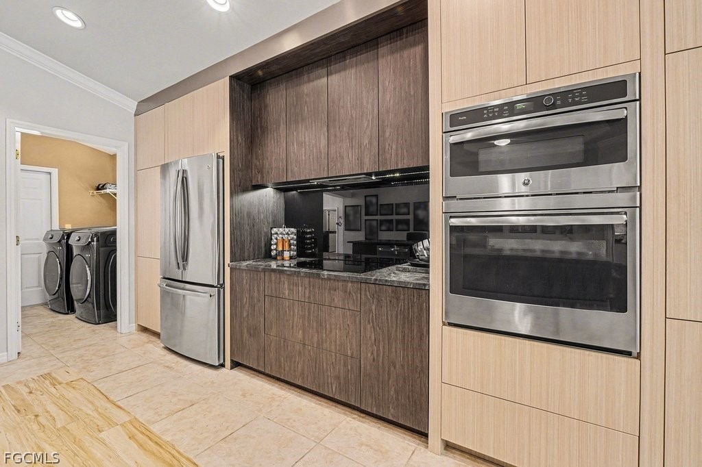 If DETAILS matter to you, then this house just might be the PERFECT fit! This impressive MOVE IN READY Cypress Model being sold TURNKEY has been thoughtfully RENOVATED- no detail has been overlooked. On the inside, you will find an OPEN layout with a HUGE GRANITE ISLAND that effortlessly integrates the main living area of the home making it the perfect match for the entertainer in you! Modern cabinetry, flooring, countertop surfaces, lighting, furniture and accessories that all tie together to unify the look and feel of the space and ultimately create an air of SOPHISTICATION from the minute you enter the foyer of this lovely home. The Primary Bedroom suite offers a SLEEK oasis with high end fixtures, a dual vanity that features ARTFUL custom built vessel sinks and mirrors; and an oversized walk in shower. On the other side of the home, your guests also will enjoy SPACIOUS quarters beautifully appointed with an adjacent bath. A closet has been added to the den so it can also function as a third bedroom. Plantation blinds grace the windows for a sleek and UNIFIED look throughout the home. Savor the warm tropical breezes by throwing open the sliding glass doors and watch the sky put on a MAGNIFICENT display as the sun sinks down over the horizon. On the outside, the home features a newer roof (2024); impact resistant windows and motorized storm protection screens for peace of mind. The beautifully remodeled pool and spa features sparkling glass tile accents; a new pool filter pump (2025); a solar heating system, and an automated pool control system by Pentair that allows you to control it all with your fingertips on your phone. The cool, easy-care paver patio is an upgraded surface that pulls the outdoor space together, allowing you to comfortably host family and friends on the oversized, fully screened patio that overlooks the wooded preserve.