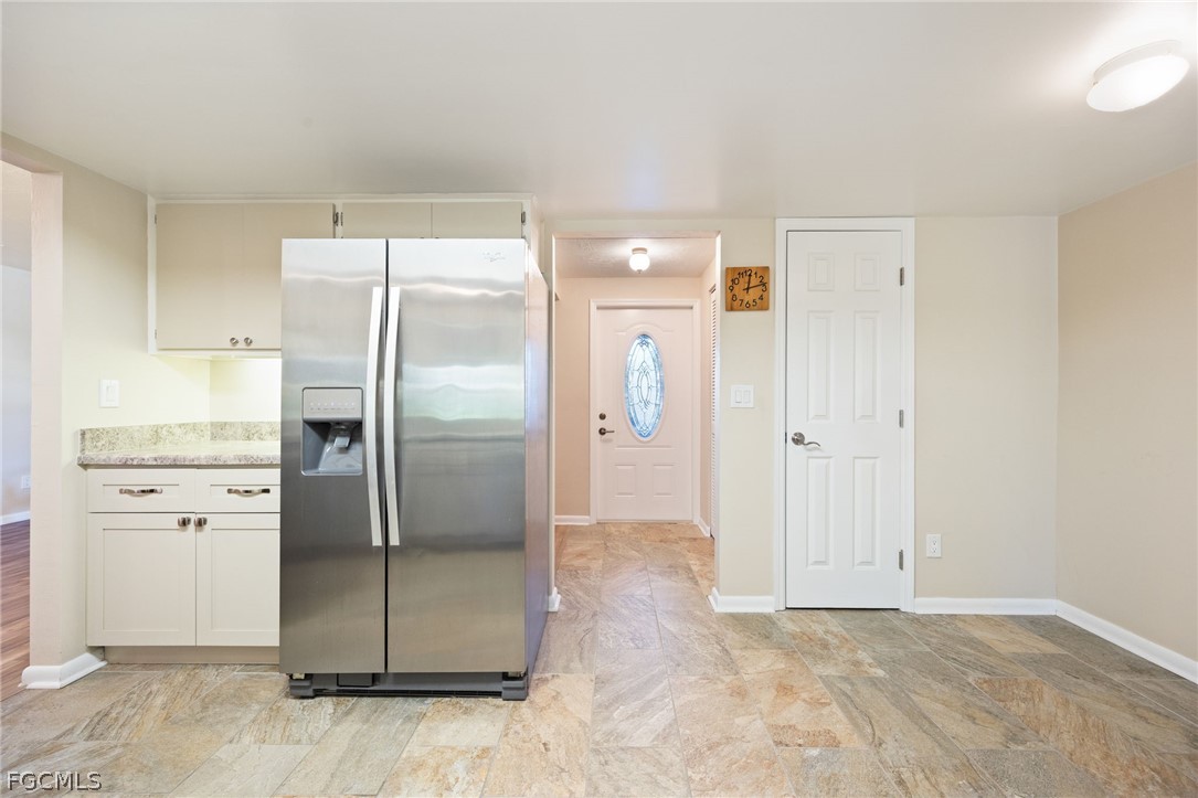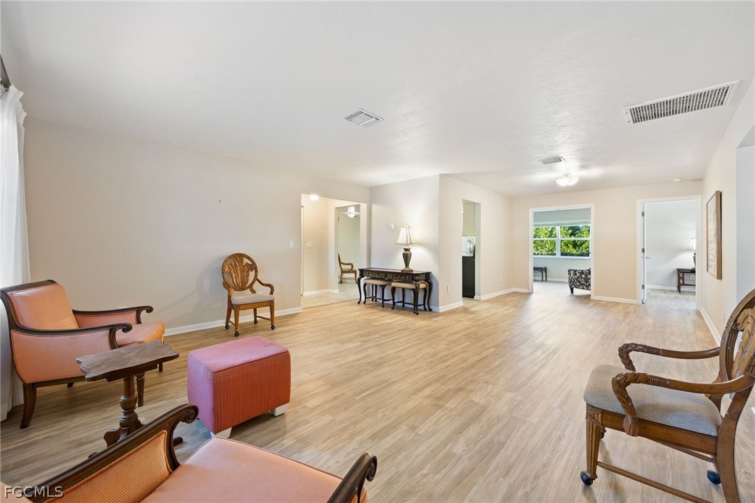 Remodeled after Hurricane Ian with fresh finishes and updates, this Fort Myers single-family home in Tahitian Shores delivers easy Florida living on a spacious corner. Inside, you’ll find new flooring, new baseboards, new interior doors, and double-pane windows (non-impact) for added comfort and efficiency. The layout is simple, functional, and flexible: 2 bedrooms, 2 full baths plus a large bonus/flex room that can easily serve as a home office, gym, or family room. Enjoy meals in the dedicated dining area or the eat-in kitchen, which looks out to the fully screened lanai—perfect for morning coffee and breezy evenings. Step outside to a private backyard oasis with mature, shade-giving trees and tropical charm, featuring macadamia, camphor, and garambola (star fruit) trees. The oversized property leaves plenty of room to add a pool and spa, expand the home, or create the outdoor entertaining space you’ve been dreaming of. No HOA restrictions means more freedom for boats, hobbies, and your lifestyle. Convenient to Sanibel Island, Fort Myers Beach, Margaritaville Beach Resort, plus dining, shopping, and entertainment—while still tucked into a quieter neighborhood setting.