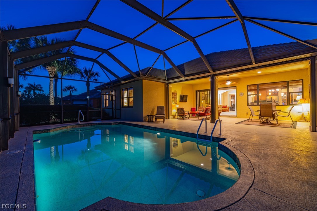 Be Prepared to Fall In Love with this Impeccable & Well Maintained, WCI Built Pool Home with an Oversized 3 Car Garage, Extra Long & Wide Paver Driveway, Spacious Open Floor Plan on Cul-De-Sac street in Hampton Park * This Elegant & Comfortable Estate Home Features Soaring Ceilings with Rich Crown Molding, Arched Walkways, Kitchen with Granite Countertops, Breakfast Bar & Nook, Den with 2 Sets of French Doors, Formal Dining Room, Living Room opening up to the Spacious Covered Lanai & Pool with Lake View, Primary Bedroom Suite with Big Walk-In Closet, Primary Bathroom with Dual Sinks, Shower & Soaking Tub, Guest Bedroom Suite with a Den/Flex Space & Large Walk-In Closet (3rd Bedroom was converted with partial wall removal), Half Bath, Plantation Shutters, ELECTRIC HURRICANE SCREENS on Lanai, Impact Windows & Sliders, Laundry Room with Sink & Cabinets, Newer Roof (2018), Newer Water Heater (1-2 yrs. new), Newer Pool Pump, Newer HVAC (approx. 4 yrs. new), Professional Lush Landscaping & Outdoor Lighting, SOLAR PANELS to Heat the Pool + Electric Pool Heater, HOA Dues include Fiber Optic Cable & High Speed Internet, County Only Taxes & Flood Zone X (no flood insurance required), Hampton Park in Gateway is a 24 Hr. Guard Gated Community with Resort Style Amenities to include Community Pool, Fitness Center, Billiards Room, Basketball & Pickleball Court, Playground, Fireplace & Covered Verandah Poolside, Ideally Located close to RSW International Airport, I75 & FGCU * Optional Golf & Social Memberships available at The Club At Gateway * SEE THE VIDEO and Call Today for your Private Showing!