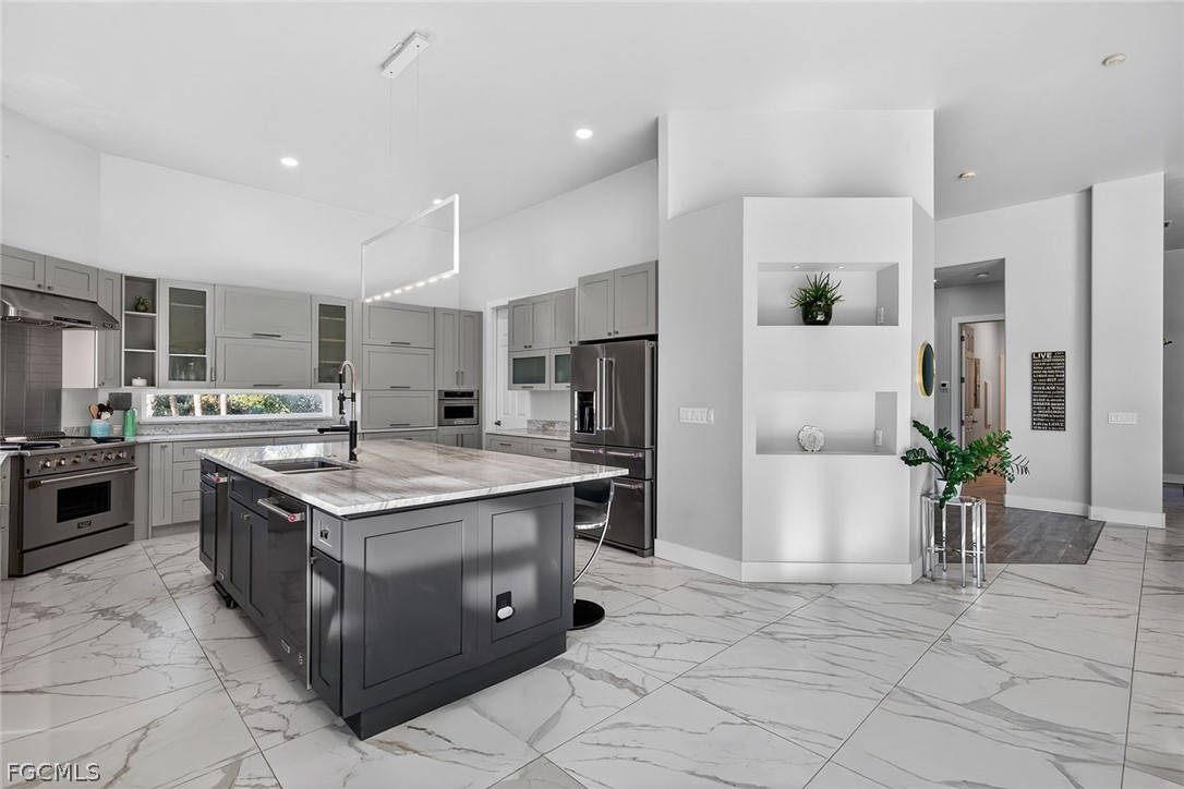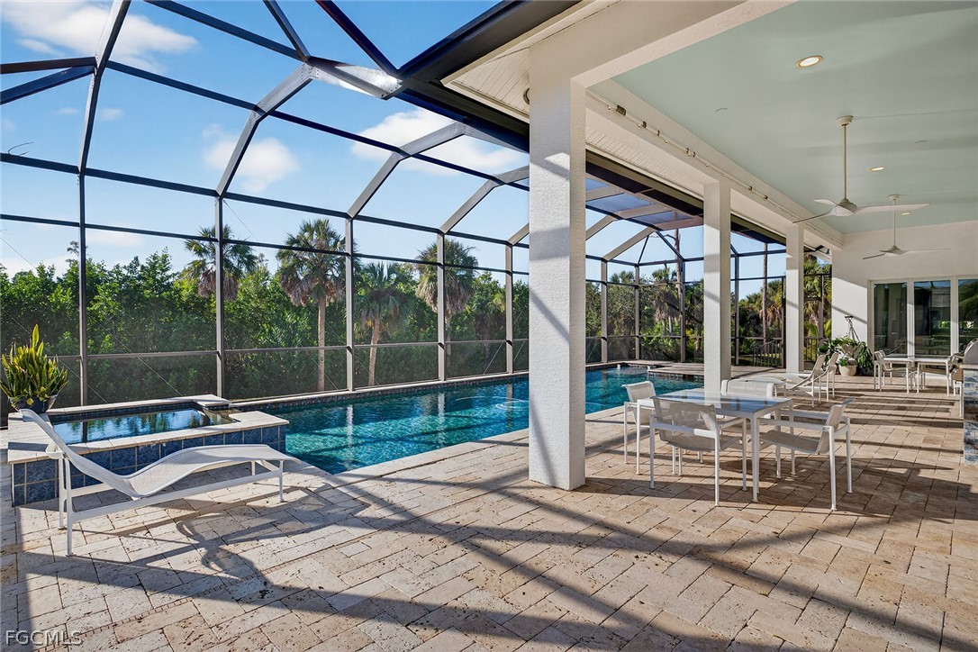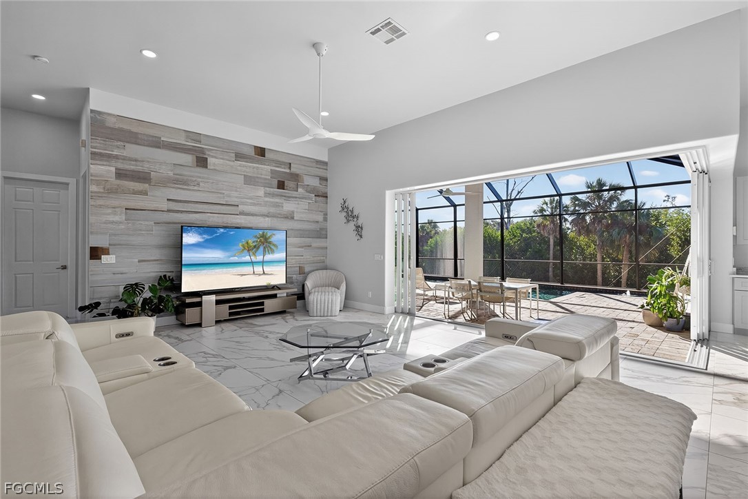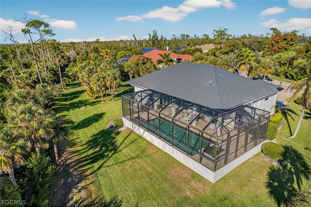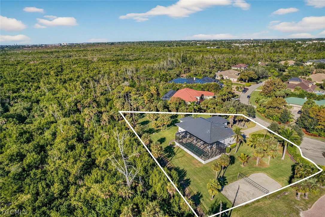 Set on an expansive lot over an acre within the gated community of Devonwood Estates, this beautifully updated residence offers a rare blend of modern luxury and natural serenity. Positioned at the end of a cul-de-sac, the property enjoys exceptional privacy with tranquil preserve views that will remain forever protected. Thoughtfully renovated, the home features refined contemporary finishes and a layout designed for effortless indoor-outdoor living. Pocketing corner sliders open to the screened pool and lanai, filling the living spaces with light and peaceful surroundings. The kitchen is designed for both style and function with exotic stone countertops, a gas range, concealed coffee station, and a spacious walk-in pantry. A glass-enclosed, temperature-controlled wine room provides an elegant statement feature. Recent upgrades include a 2024 standing seam metal roof and hurricane-impact windows. Devonwood residents enjoy tennis courts, community boat and RV storage, and private boat ramp access to Hendry Creek.