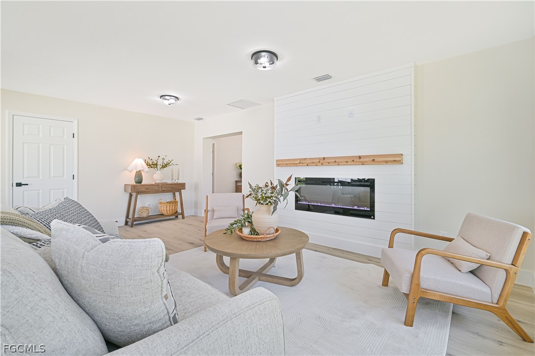 Golfer’s dream! Fully Renovated single-family home located in the highly sought-after resort-style golf community The Villages at Country Creek in Estero. The property has been totally renovated from top to bottom. Step inside, you'll be greeted by stunning Luxury vinyl plank that graces the entire house with 5 inches baseboard gives it the modern feel. The Living room, open concept with kitchen and dining room offers great practical space for family and friends gathering and partying. This luxury kitchen carries brand new hardwood cabinets with soft closing features, beautiful calacatta quartz countertop, nice peninsula with waterfall and brand-new stainless-steel appliances. Stunning main bedroom with double closets and separated dual sink and shower area, Huge Den area with fireplace and bar is currently set up as a family entertaining room but can be easily set up as third huge bedroom. Home has brand-new LED lighting throughout the entire house. Property has newer 2024 roof that provides peace of mind for years to come. Perfect cute screen in lanai area overlooking golf course is a perfect spa for a morning coffee. Country Creek is a most welcoming community with an 18-hole executive course designed by Gordon Lewis with low cart fees, a full-service restaurant and bar, and an outdoor patio bar to enjoy your favorite lunch or a refreshing beverage after your golf game or that mid-day swim. Social activities are abundant in this friendly community offering five pools, a spa, golf and tennis leagues, bocce leagues, Wii bowling and a vibrant bar ideal for Sunday afternoon football fun! Other activities include book clubs, knitting circles, card clubs, volunteer groups and endless celebrations at the clubhouse. Location is perfect between Naples and Ft. Myers and minutes from RSW Airport, post office, library, casual and fine dining. Coconut Point and Miramar Outlets and, of course, the beautiful beaches of Southwest Florida.