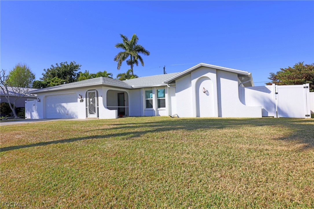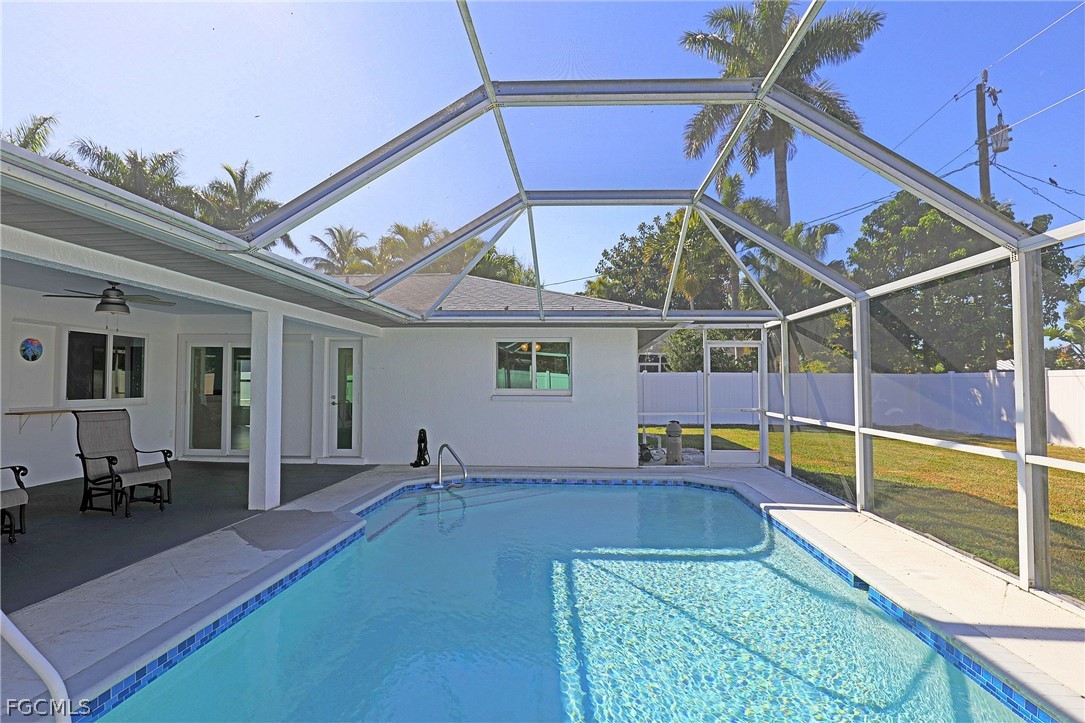 Check out this amazing 3 bedroom, 2 car garage home with over 1800 square feet of living area situated on a fully fenced in lot for your privacy. The assessments are all in and paid so no stress there. This home boasts impact doors and windows for all around for storm protection and all the sliding glass doors pocket which blurs the lines between indoors and out for that truly Florida feel. Come inside and see the beautifully remodeled kitchen with gorgeous glass backsplash, posh wood cabinetry, stainless steel appliances and a large farmer's sink. All this and close to downtown, the new Bimini Square waterfront development and just a short walk or golf cart ride to the possible "Central Park of Cape Coral". This spacious home has room for the whole gang, whether it's living with your nuclear family, multigenerational, friends or just having the whole place to yourself, there's plenty of room for it al with two separate living areas. Outside is where things get really exciting, this huge space is perfect for entertaining, neighborhood BBQ's, croquet, playing with the kids, letting the dogs run wild or maybe a She-Shed, the possibilities are literally endless. Just a quick trip to shopping, dining, Downtown, Midpoint, Tarpon Point, Cape Harbour etc. and an easy commute to Fort Myers. This house is close to it all and just ready and waiting for you to make your own.