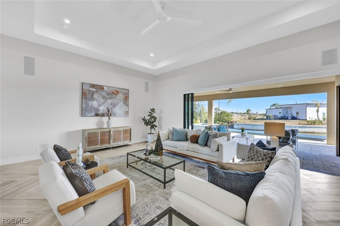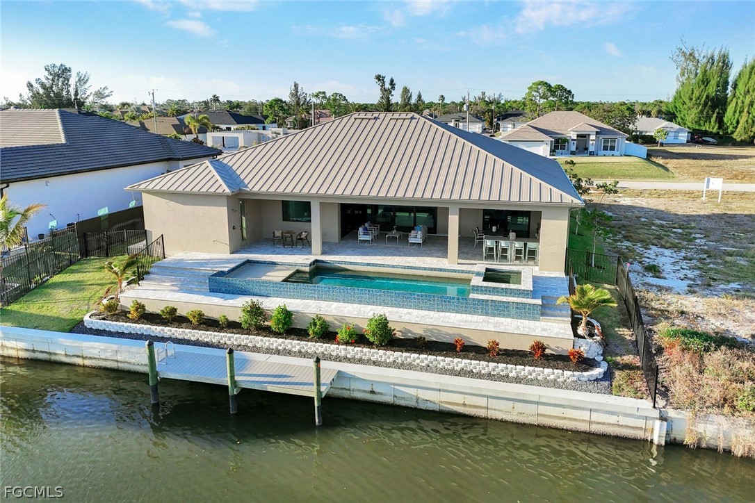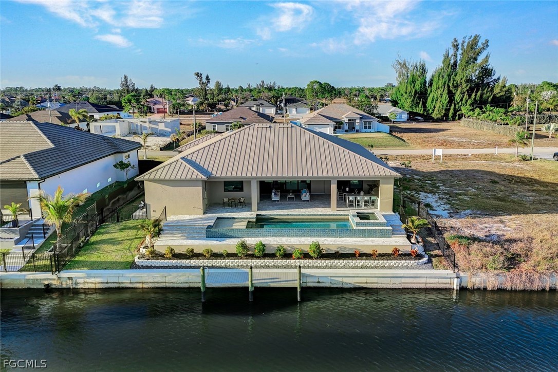 Direct Gulf Access with panoramic intersecting canal views, southern exposure, and LOADED WITH UPGRADES. This custom-built NEW CONSTRUCTION home is completed and move-in ready, offering 3 beds plus an office, 3 full baths, a 3-car garage, and an oversized lot positioned on a wide intersecting Gulf access canal. The negative edge pool and spa overlook expansive water views, while the sunny southern exposure provides the most daytime sunlight on the pool area. Designed for true indoor-outdoor living, the home features 90-degree sliding glass doors that open completely to the lanai, blending interior & exterior spaces. Inside, you will find tile flooring laid in a herringbone pattern, soaring volume and tray ceilings, a open great room concept, and motorized blinds. The chef’s kitchen is built to impress with a 6-burner gas range, dual wall ovens with convection, air fry, and steam features, a French 4-door fridge, a pot filler, under-cabinet lighting, an oversized center island, a walk-in pantry, and a waterfront dining space. A large built-in bar with a wine cooler provides an elegant entertaining area or coffee station. The home includes a full-house RO (reverse osmosis) for great water. The home is wired for indoor surround sound and features outdoor speakers ideal for entertaining, poolside gatherings, and watching the big game! The master suite is a waterfront retreat with dual walk-in closets and a spa-inspired bath featuring LED mirrors, a designer soaking tub, dual vanities, and a custom walk-in shower with striking tile detail. Guest bedrooms are generously sized and thoughtfully appointed for family and visitors.
