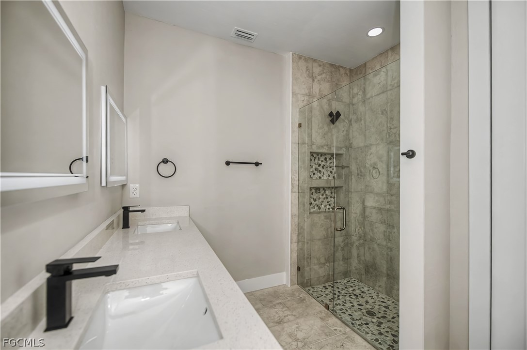 The master suite offers a walk-in closet and a double-sink vanity. A large laundry room includes extra storage and a utility sink for added functionality.