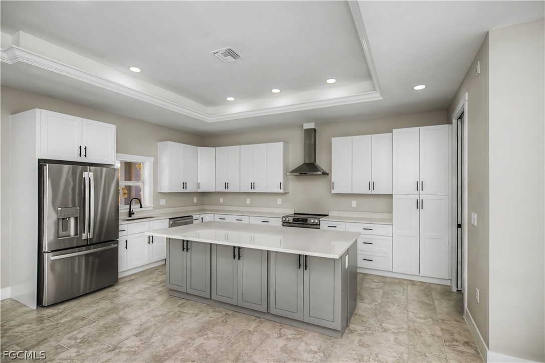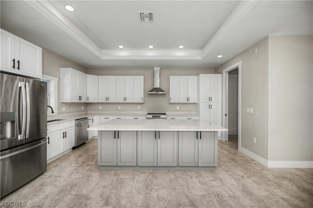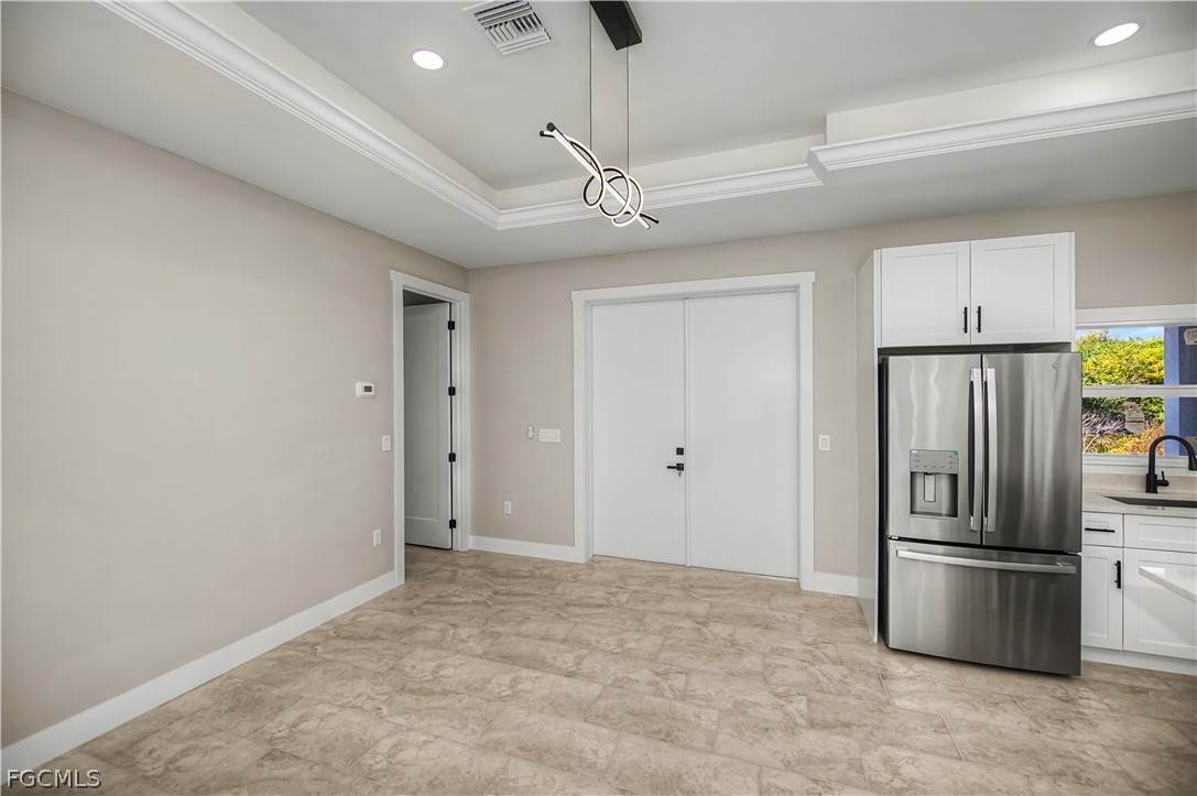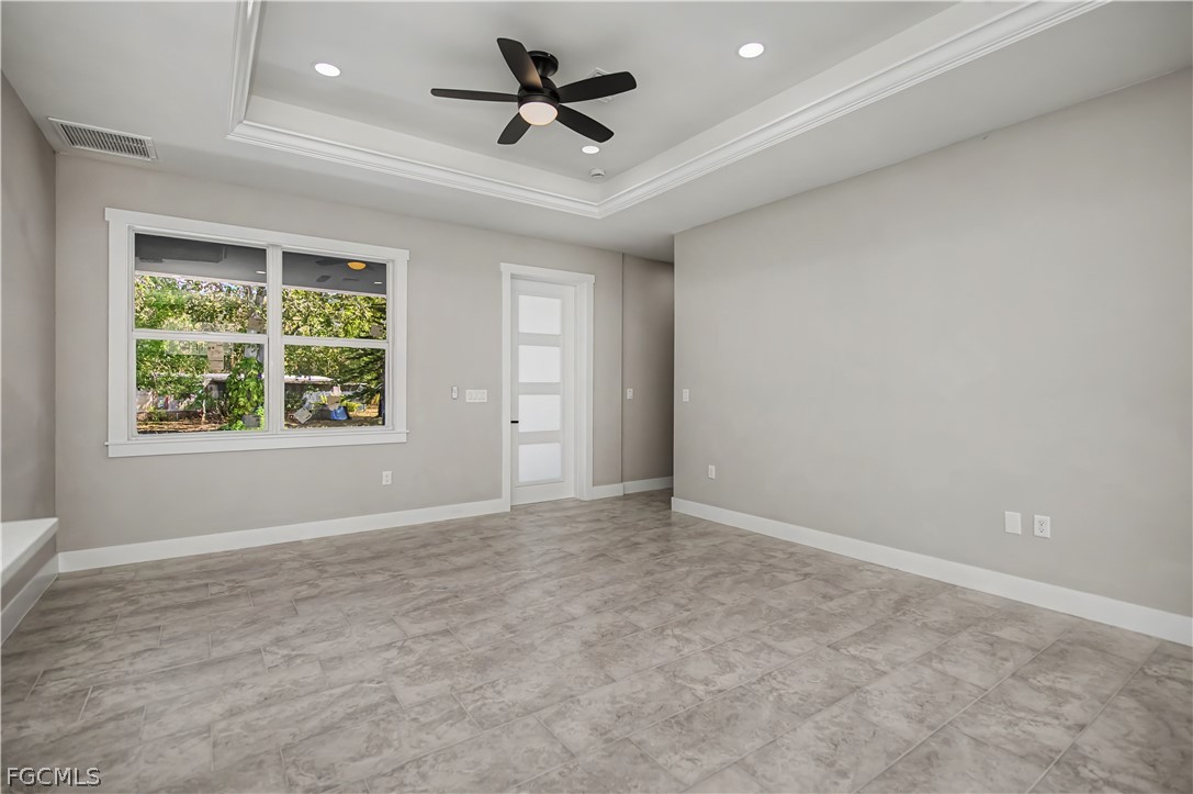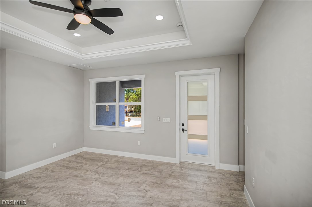 Inside, you’ll find 10-foot ceilings with 8-foot doors, tray ceilings accented with crown molding, and energy-efficient LED lighting throughout. The kitchen is equipped with a cooktop, fume hood, and reverse osmosis system for added convenience.