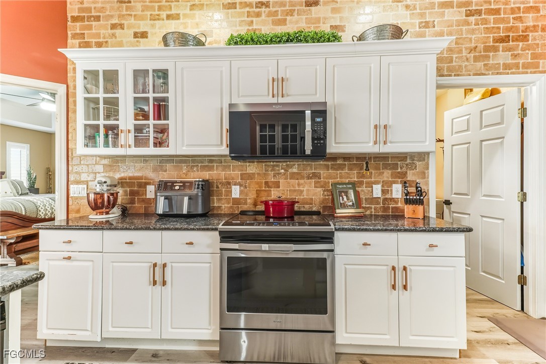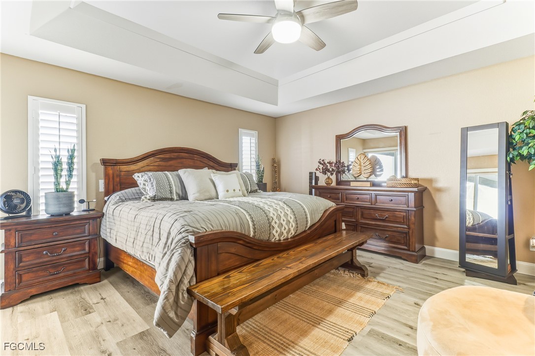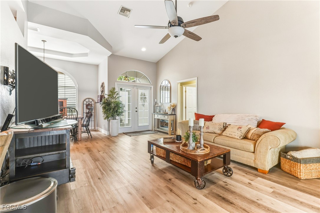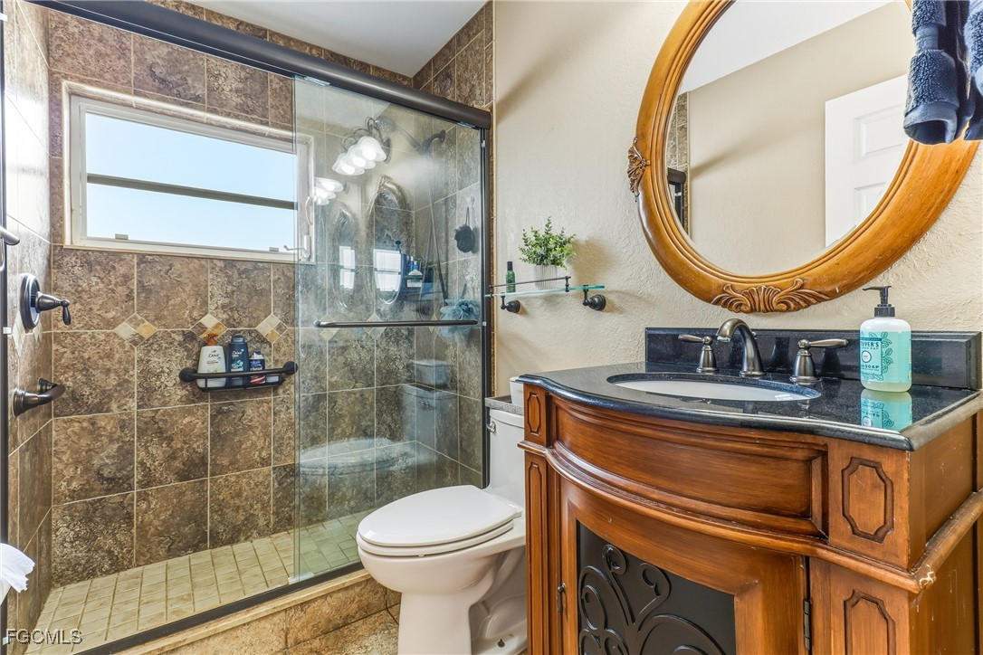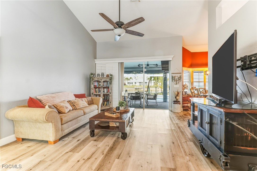 Waterfront Pool Home | 3 Bed + 2 Bath + 3 Car Garage | Wide Water Views | Rhodes Canal & Shamrock Lake. ***NO FLOOD INSURANCE REQUIRED*** This home is conveniently located in the CENTER OF THE CITY! Exceptional opportunity to own a beautifully maintained waterfront HEATED pool home in SE Cape Coral offering expansive wide water views of the Rhodes Canal and Shamrock Lake. This 3 bedroom, 2 bathroom home with a 3-car garage is located in a quiet, hidden gem neighborhood with only one road in and out, surrounded by water — providing added privacy and limited through traffic. The exterior of this home features a screened front entry with double door entrance, mature tropical landscaping with decorative concrete curbing, fenced backyard, and concrete cantilever dock and more! Dimensional Shingle Roof only 3 years old (replaced after IAN). Interior highlights include: • Updated kitchen with granite countertops • Upgraded white cabinetry with crown molding & modern hardware • Stainless steel appliances • Cabinet pantry • Brick-look tile backsplash • Drop pendant lighting • Newer wood laminate flooring (original tile remains underneath for buyer preference) • Plantation shutters throughout, including rear sliders • In-residence laundry room with utility sink. The split floor plan offers a spacious primary suite with tray ceiling, large walk-in closet, and double door sliders leading to the oversized under-truss lanai and pool area. Guest bathroom has been upgraded with tile flooring, upgraded vanity, custom mirror, and floor-to-ceiling tiled shower with frameless bypass glass doors and natural light window. Outdoor living out back is designed for entertaining with a large covered lanai, private pool, Kevlar roll-down hurricane shutters on the lanai (for sun blocking and added privacy, functioning sprinkler system, and WIDE water views. Located near shopping, dining, schools, and easy access to Fort Myers. Waterfront + pool + 3-car garage + wide water views — a rare combination in this area.