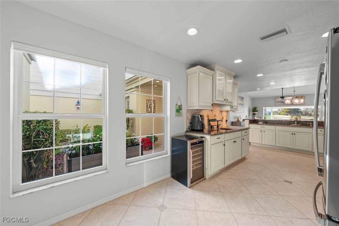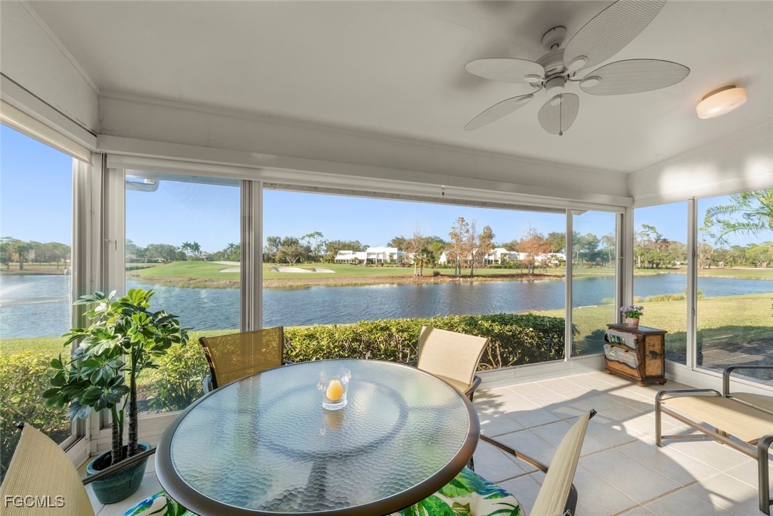 Nestled in the intimate Carriedale Cottages of Fiddlesticks Country Club, this 3-bedroom, 2-bath villa offers a refined blend of comfort and understated elegance. The spacious kitchen is appointed with granite countertops and stainless steel appliances, designed to feel both functional and inviting, while the interiors are bathed in natural light for an airy, welcoming atmosphere. Glass doors open to a panoramic-enclosed lanai, where peaceful lake views transition seamlessly into the manicured golf course beyond—an ideal setting for morning coffee or evening relaxation. This residence captures the essence of effortless country club living in a quiet, beautifully maintained enclave. MANDATORY EQUITY MEMBERSHIP FEE OF $115,000 DUE AT CLOSING. ADDITIONAL MONTHLY FEES APPLY.
