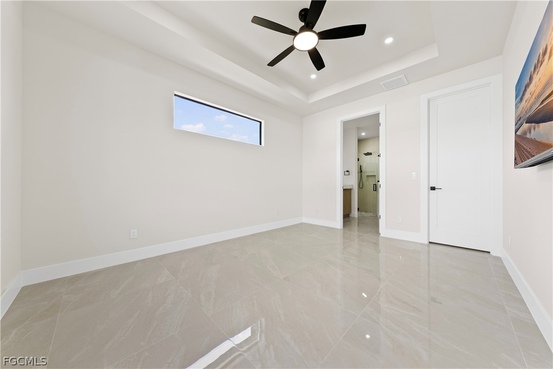 The primary suite is designed as a private retreat, complete with dual sinks, a well-appointed en-suite bathroom, and generous space for relaxation.